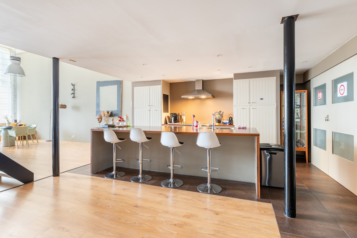 Escape to a peaceful sanctuary in the heart of Antwerp's charming city center, boasting: - This 200m2 loft, is nestled on the first floor of the historic remains of a 15th-century abbey! - A modern oasis with 3BR and 3BA, a fully equipped kitchen, cozy living and lounge area. - Enjoy high-speed WiFi and unwind with the Smart TV or on the terrace overlooking the garden. The prime location offers easy access to the vibrant city heritage, museums, restaurants, and shops without hassle.
