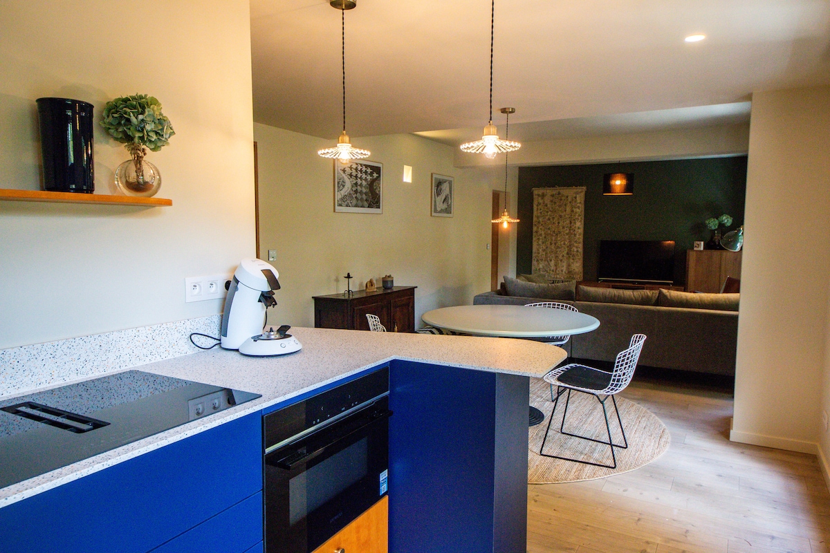 Cet hébergement élégant est parfait pour les groupes de 4 personnes entièrement privé. L'appartement est situé au rez-de-chaussée. La chambre principale est une suite spacieuse, qui donne sur le jardin. Les plafonds sont hauts. Le centre historique de Gand se trouve à 10 minutes. On se trouve à 40 km de Bruges. Dans le quartier ont y trouve une dizaine de bars, restaurants dans un rayon de 500m. La boulangerie se trouve de l'autre côté de la rue. Le parking est privé et gratuit.