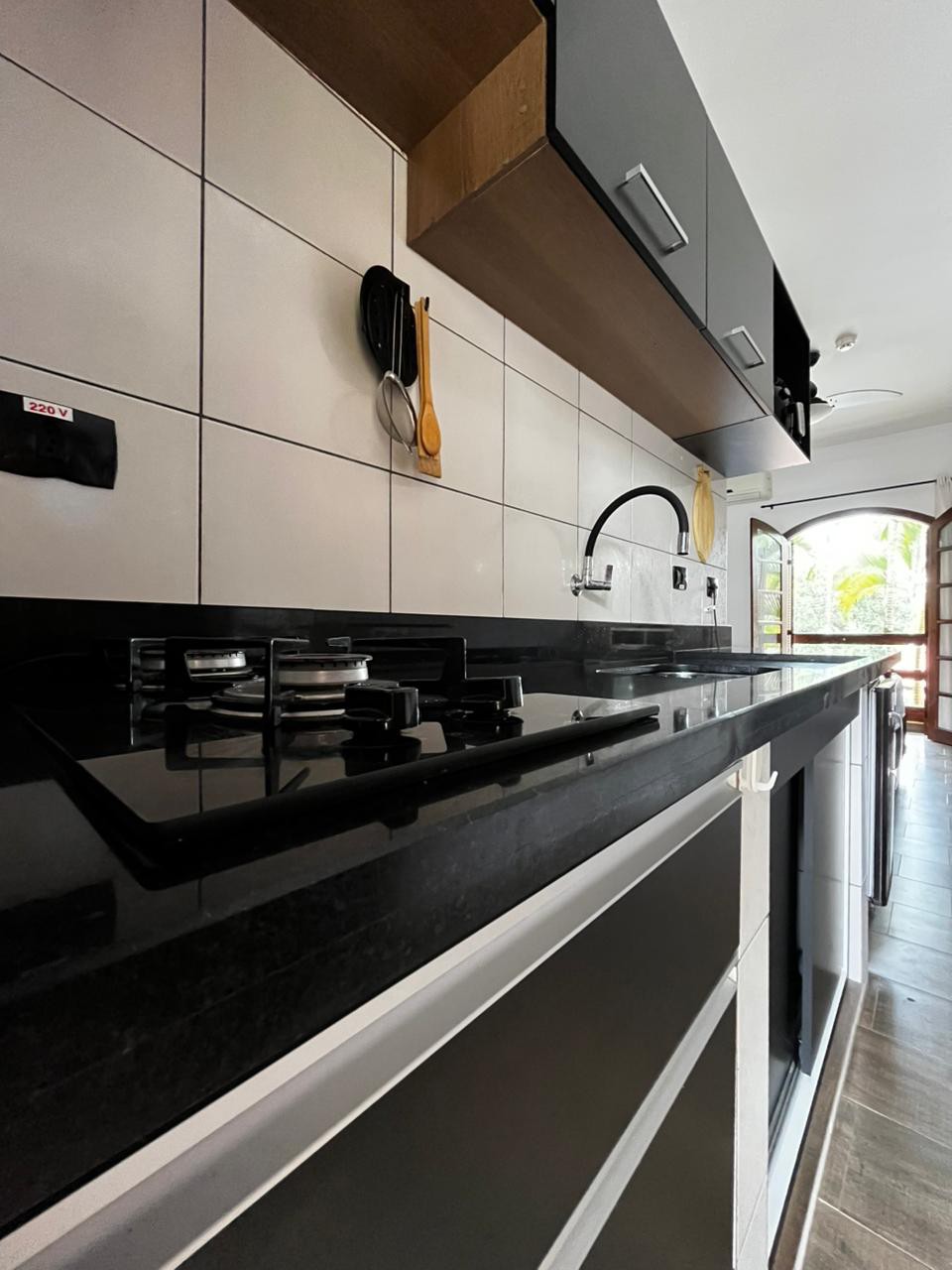 Chalé confortável em Condomínio Fechado, com churrasqueira privativa na varanda do Chalé, espaço amplo e arejado em meio a Mata Atlântica, local seguro e sossegado. No condomínio, portão automático, piscina, playground, mesa de sinuca e estacionamento dentro do condomínio ao lado da casa. Distância para Praia de Camburi / Camburizinho 4km.