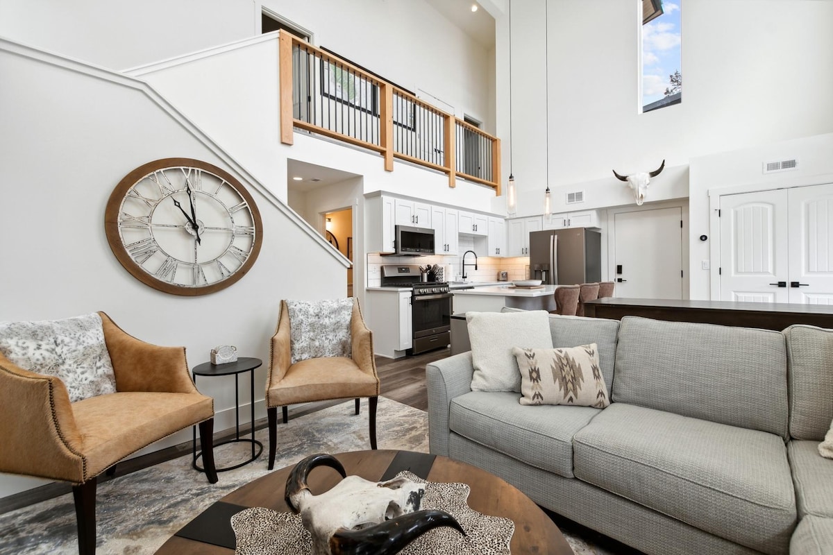 Escape to this stunning modern mountain retreat, perfectly located near everything with breathtaking views and fully stocked for fun! Hot tub & seasonal pool Only 10 minutes to the slopes Walk to groceries, restaurants, brewery, and more Cozy up by the fireplace, relax in the oversized tub, or enjoy mountain views from the hammock on the deck. With everything from ski rentals to ice skating across the street, and easy access to downtown, this is the perfect luxury getaway.