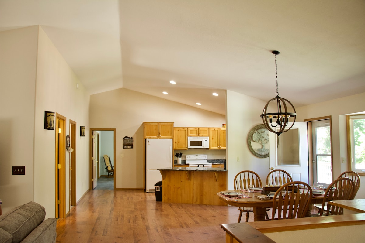 ENJOY MONTANA wilderness with ALL the amenities. Hike, bike, golf, ski/board, relax, bbq, soak in your OWN hot tub! Private neighborhood located MINUTES from downtown Whitefish! 8 miles from Whitefish Mountain Ski Resort, 30min drive to Glacier National Park, 10 min walk to Whitefish beach. We provide maps, adventure books, hiking packs, bikes with locks, cooking supplies, spices, snacks and so much more! We love Montana and want you to enjoy it like we do!