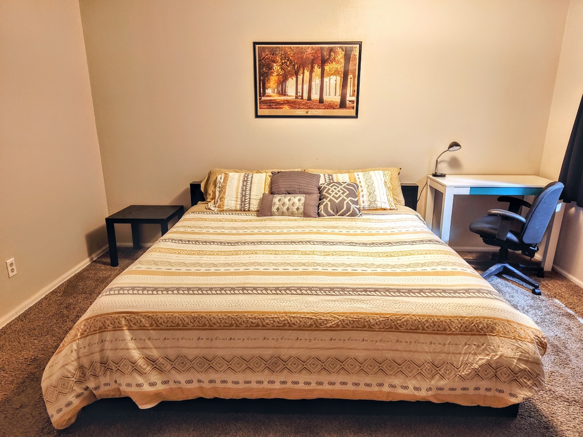 Welcome to my home in South Boulder, CO. This recently updated 1,000 sq ft garden level apartment features a bright, open-concept layout, a California King, a workspace with monitor, a private entrance, filtered water, an in unit washer/dryer, an outdoor patio, easy on-street parking, and a waterfall shower. Located minutes from the Boulder hiking trails, the University of Colorado Boulder, and 3 miles from Pearl Street Mall.