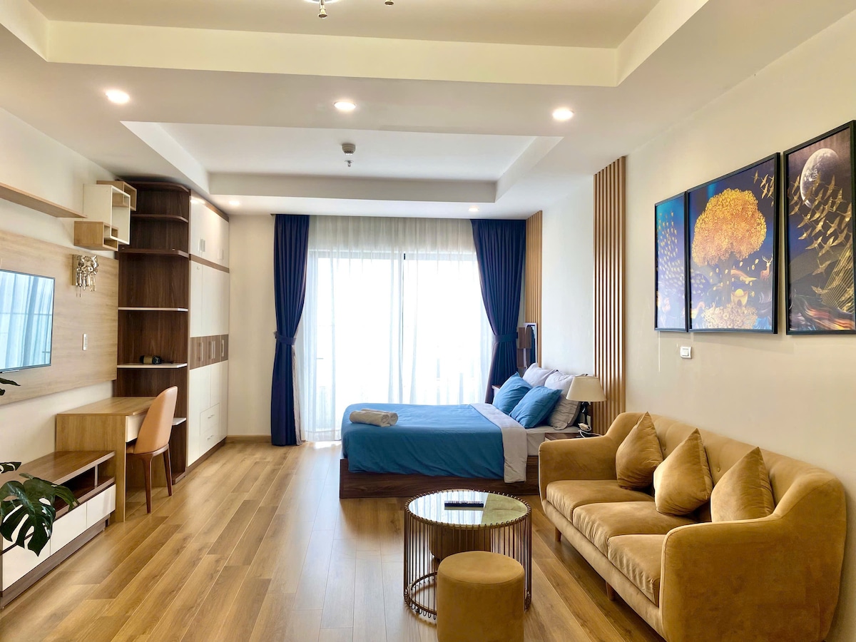 Welcome to a relaxing seaside retreat in the heart of Quy Nhon! This modern and cozy studio with a sea view balcony is located inside TMS Quy Nhon - Hupasearest - just a 2-minute walk from the beach. Ideal for couples, solo travelers or business travelers looking for a clean and fully-furnished space like your own home. 🛏️ The studio is equipped with: 1 comfortable King-size bed. Air conditioning, Wi-Fi, Smart TV. Kitchenette with refrigerator, cooking utensils. Private bathroom with hot water