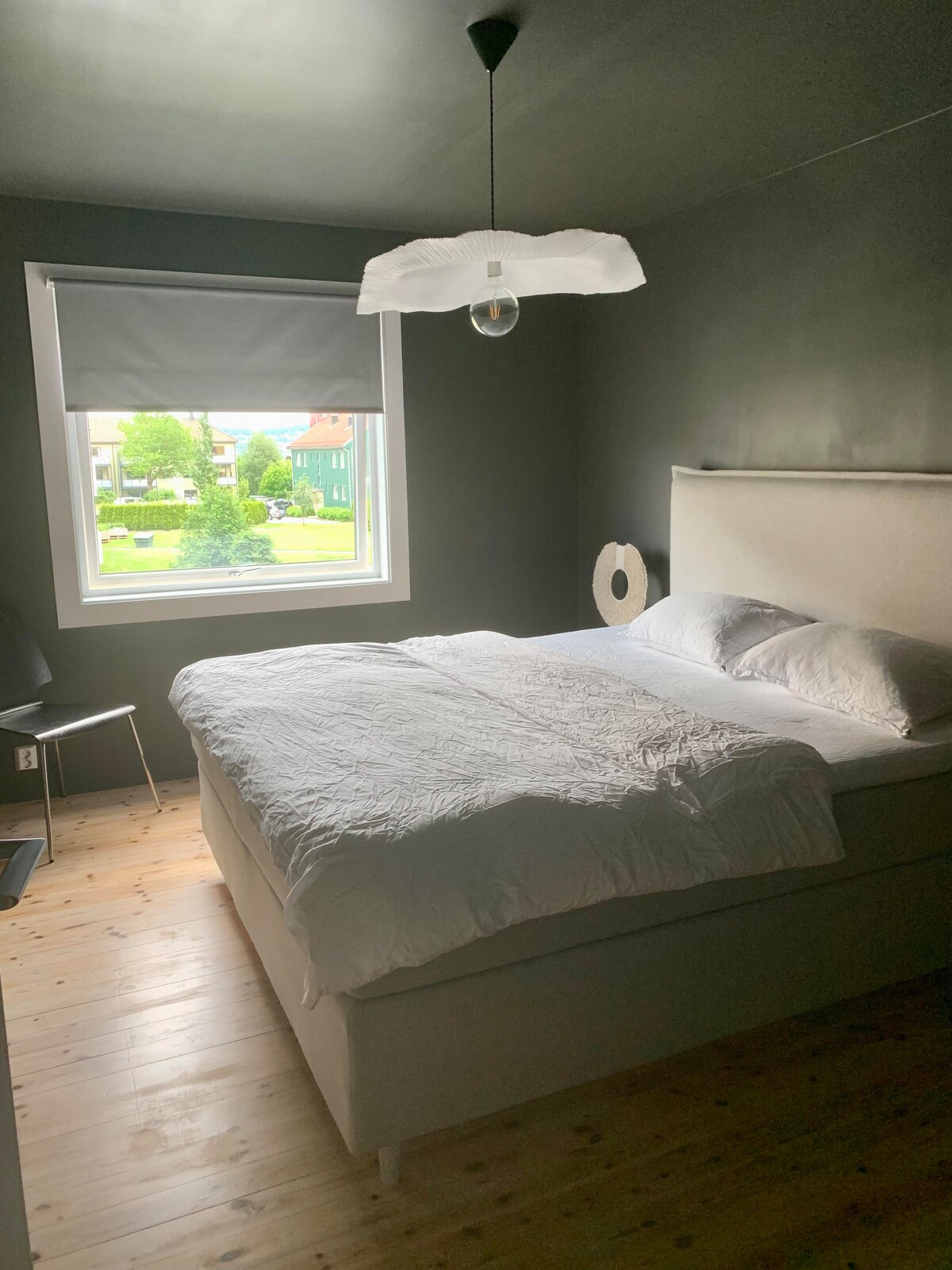 A large and comfortable apartment close to center of Kristiansand. The apartment has kitchen, two bedrooms and a bathroom; suits a family and longer stays.. It has two balconies and garden accessible from main bedroom and living room. The kitchen is modern Scandinavian design with dining facilities for six persons and has a chair for small children. Grand living room. Bathroom accessible from the hall and one of the two bedrooms. Wi-Fi. Parking for four cars and charging of EV is possible
