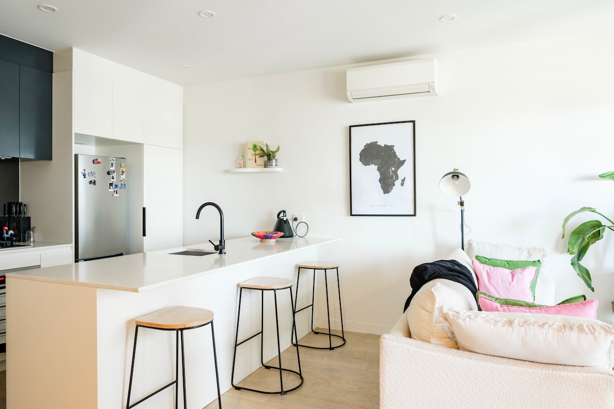 Feel right at home in this modern, Afro-inspired apartment located by the Maribyrnong river offering the perfect blend of comfort, convenience and culture. It comes with a fully equipped kitchen and fast Wi-Fi. Access to a pool, sauna, steam room, gym and BBQ & dining entertainment area. Perfect for solo travellers, friends, couples and business visitors. This is your perfect base to explore Melbourne while enjoying a relaxing and welcoming home.
