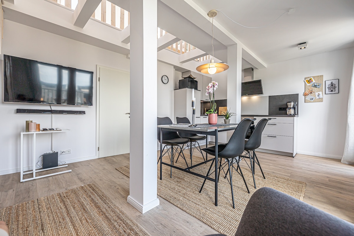 This newly renovated 76m2 apartment is an aesthetic haven designed for tranquility, connection, and absolute comfort at just a 5-minute walk from the beating heart of Flensburg Downtown and harbor. Whether you're exploring the city solo, reveling in a romantic getaway, or bonding with friends, our space is tailor-made for creating unforgettable Flensburg memories. So reserve, sink into relaxation, and experience the essence of Flensburg at its finest. Your perfect escape is waiting for you!