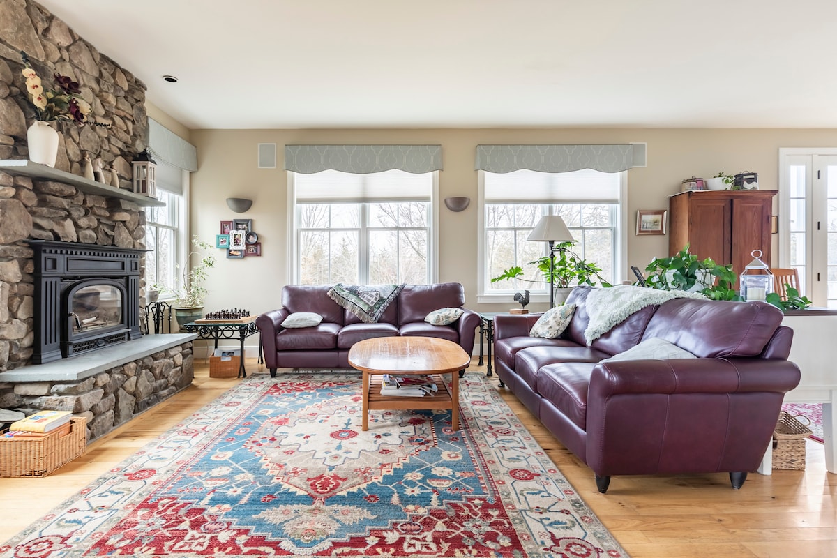 Enjoy all Vermont has to offer in this bright, airy space minutes away from Burlington and the mountains. On 14 acres with a brook, it’s a short walk down a dirt road to a historic covered bridge and town common. Fall colors are breathtaking when taken in from the barn deck, while Spring and Summer visitors enjoy free concerts on the town green on Sundays. Spectacular sunsets and hot air balloons are familiar sights. It doesn’t get much more Vermonty. *Note: No Cleaning Fee!