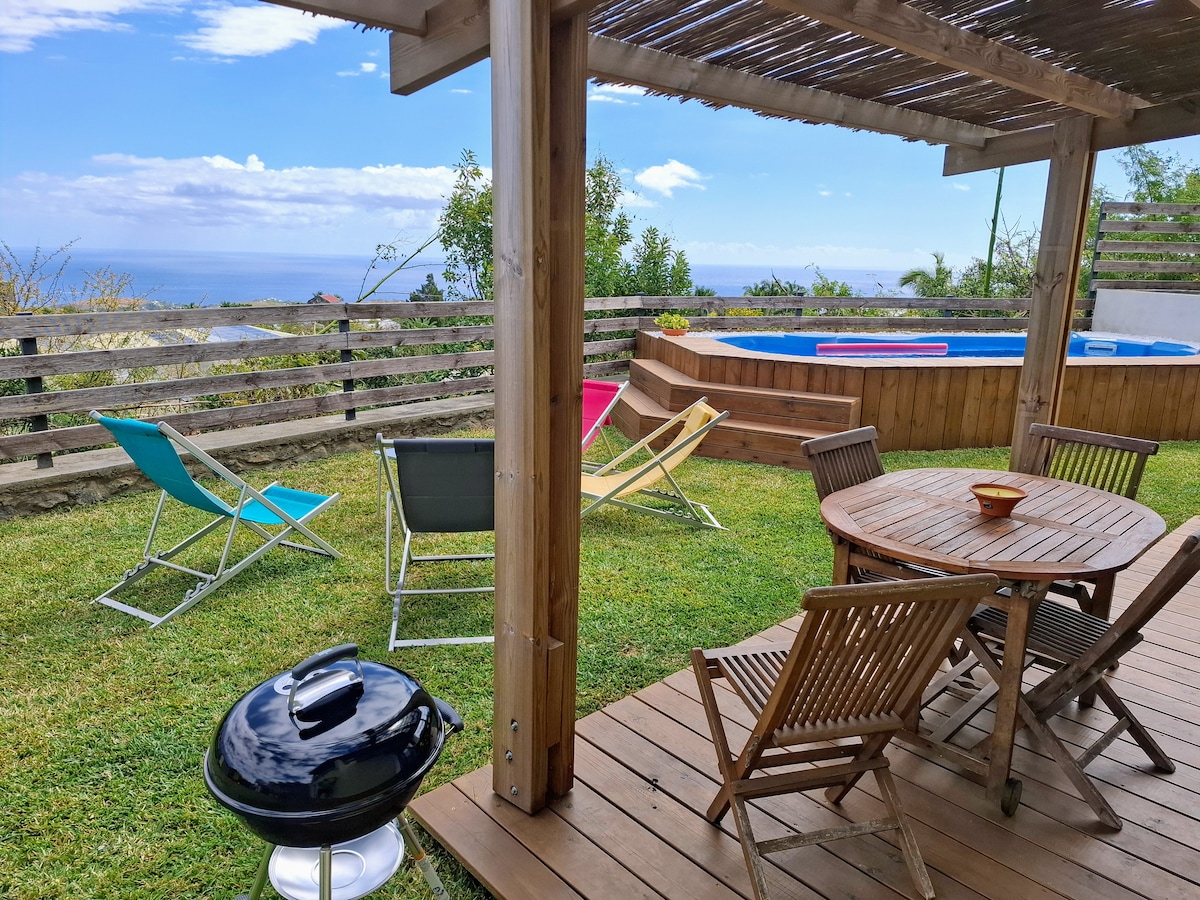 Le gîte "LE TI NID" ,avec vue imprenable sur l'océan indien et ST PAUL, 20m2 refait à neuf avec goût. Il est équipé d'un jardinet, de la piscine familiale et d'un accès privé. La piscine est chauffée et la chambre est climatisée. La nuit sous les étoiles vous pourrez contempler ST PAUL By night. Le matin au petit déjeuner vous apercevrez et entendrez les oiseaux colorés locaux. Équipé d'un séjour kitchenette tout équipé, 1 chambre, wc et douche. Le plus surprenant et apprécié de nos visiteurs...