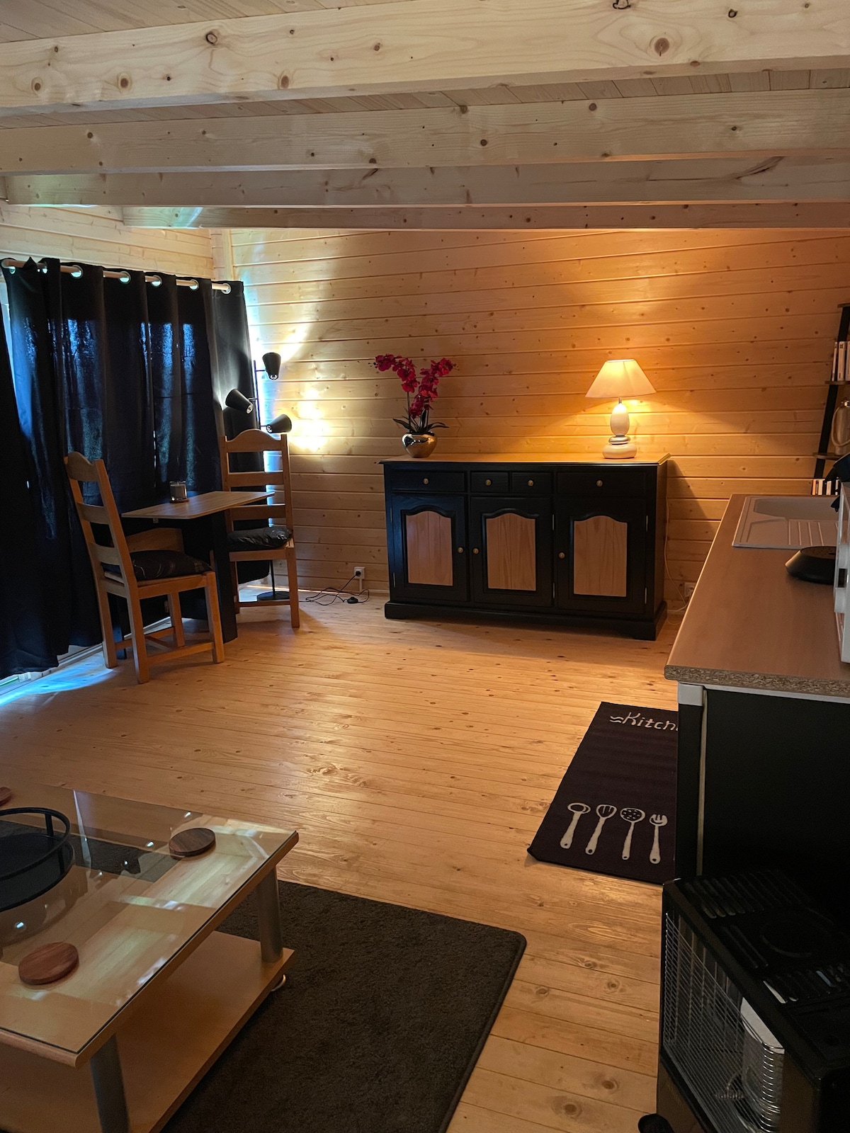 vous serez accueillis dans un petit chalet très cosy noyé dans la verdure au bord d'une rivière avec un accès piscine de mai a octobre. Il est parfait pour un couple souhaitant passer la nuit dans un endroit romantique et au calme au plus proche de la nature. la chambre est prévue pour deux personnes, avec salle d'eau et WC privatif, elle est chauffée et climatisée et vous pourrez même prendre votre thé ou café du matin sur la terrasse en bois ....seuls au monde !