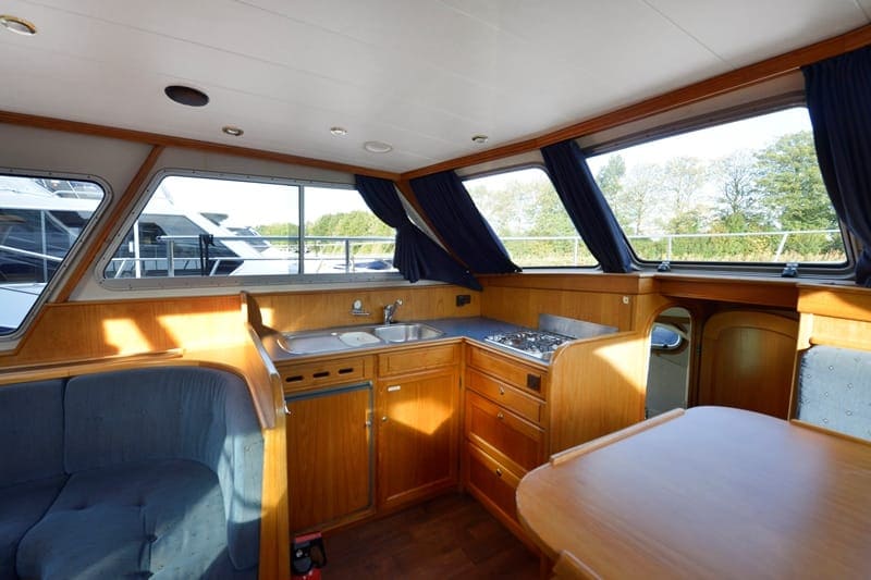 Kajuit: De boot is voorzien van een ruime zithoek die om te bouwen is naar twee royale eenpersoons bedden. Keuken: De compacte keuken is voorzien van alle benodigdheden, met gasfornuis, oven en koelkast. Slaapruimte: Naast slaap mogelijkheden in de kajuit, is in het achter en voorschip een tweepersoons bed. Sanitair: Aan boord is een toilet en schone handdoeken. Gelegen nabij de boot zijn er moderne douche en toilet faciliteiten. Inclusief een wasserette.