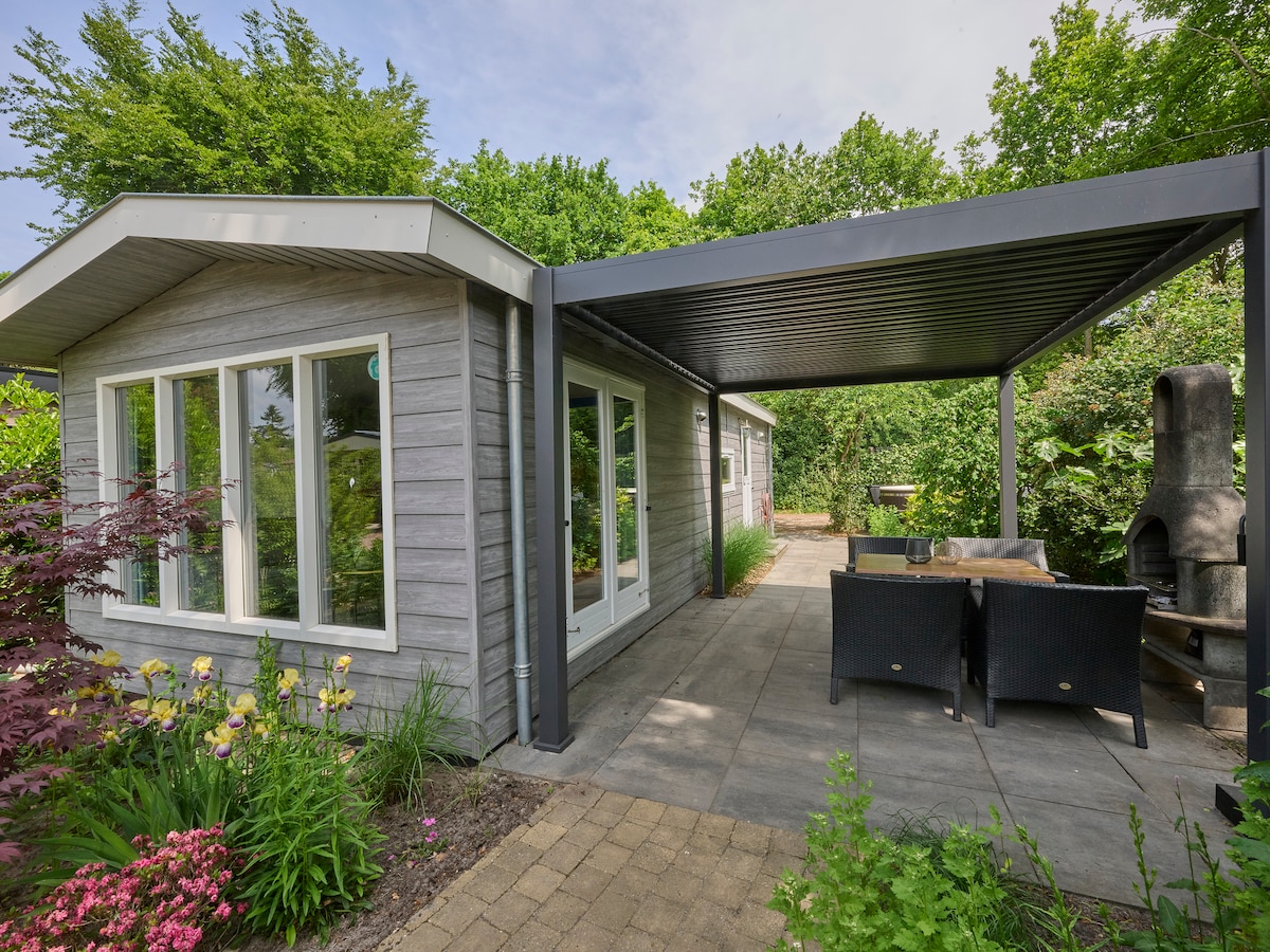 Come and stay in the middle of the woods on the Veluwe and close to the Zandverstuiving and completely relax! The chalet has a lot of privacy, a spacious garden with a spacious veranda and a small sauna where you can relax and relax undisturbed. Air conditioning and WiFi are available in the chalet The chalet is located in a 4-star Capfun Park and there is plenty to do for young and old. There is an outdoor heated swimming pool with water slides, a petting zoo, several playgrounds!
