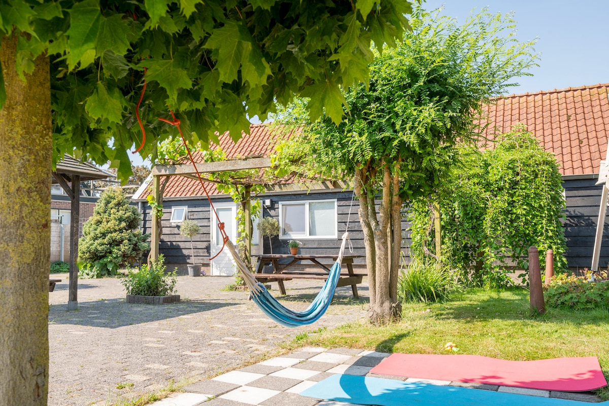 Set your base for exploring the beautiful nature surrounding of the North of Holland. The Bee is a 5000m2 retreat comprising of an apiary, large garden and playground, café with terrasse, boat and bike rentals and holiday rental homes/trekkerhuts. The apartment is fully equipped with 2 bedrooms, large living room/ kitchen and private shower/bathroom. Enjoy a family BBQ on your own terrasse or just unwind overwatching the sunset.