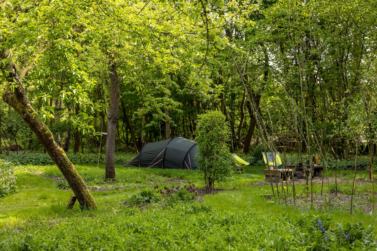 This is a campsite. You are required to bring your own tent and all camping gear. Come and relax at our campsite in our orchard, where nature embraces you. This magical spot offers a romantic retreat, far away from the hustle and bustle of daily life. Discover the art of outdoor cooking amidst green splendour and wake up to the sound of birds in the morning. Next to the sanitary building is a cozy garden room where you can relax, even in poor weather.