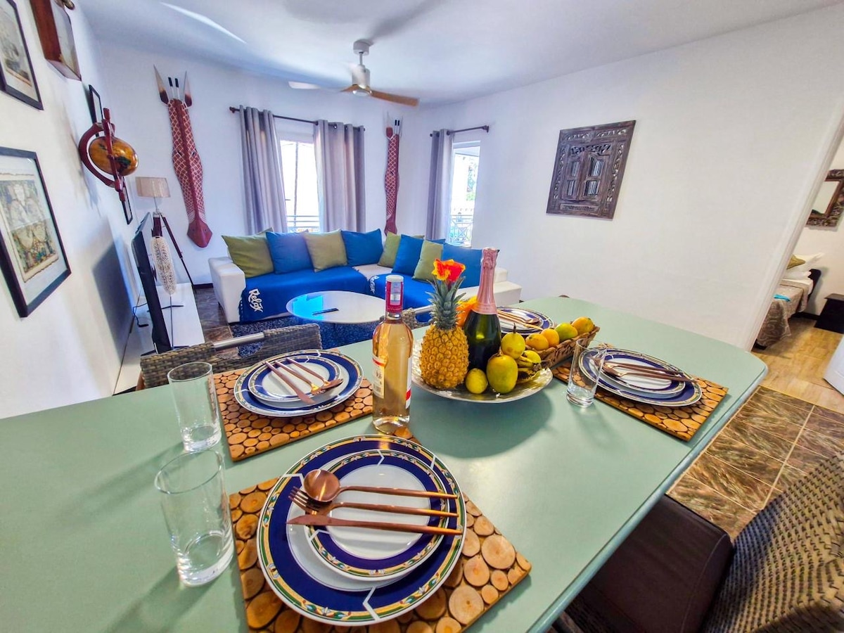 Jolie petit Appartement en bord de mer pied dans l'eau, 1 chambre double avec canapé lit au salon, cuisine américaine agencé tout équipée, living, terrasse sur le jardin avec piscine et jacuzzi, magnifique couché de soleil, plage de sable, magnifique endroit pour le snorkling, bien centré pour les excursions dans un endroit pas trop touristique. supermarché et petit shop à proximitée.