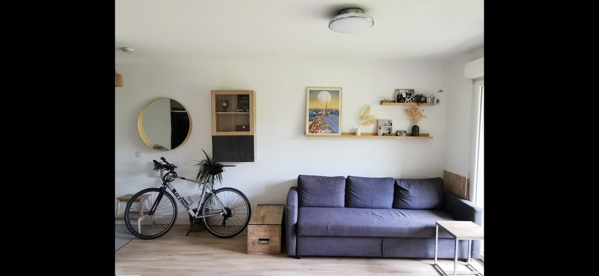 Bonjour, Nous vous accueillons en Français, en Anglais, en Espagnol et en Arabe. C'est un plaisir d'échanger avec vous dans votre langue ❤️ Petit studio refait à neuf, moderne et très cosy. Situé au calme proche de Bordeaux. Bus de ville à proximité. Il est équipé d'une climatisation réversible, TV, défroisseur, frigo, machine à café, plaque induction, micro-onde.