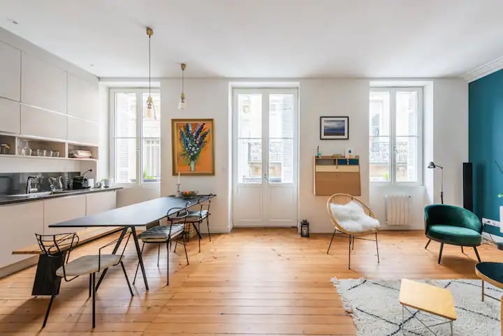 ✨ Profitez d’un séjour inoubliable dans ce magnifique appartement entièrement rénové avec goût 🏡 Situé en plein cœur du vieux Bordeaux, dans le quartier historique de Saint-Pierre, vous serez à deux pas du célèbre Miroir d’eau 💦 et à quelques minutes de la rue Sainte-Catherine, parfaite pour vos envies de shopping 🛍️ 🍷 Restaurants typiques & bars animés à proximité 🚶♀️ Emplacement central pour visiter la ville à pied 💫 L’adresse idéale pour découvrir Bordeaux comme un local !