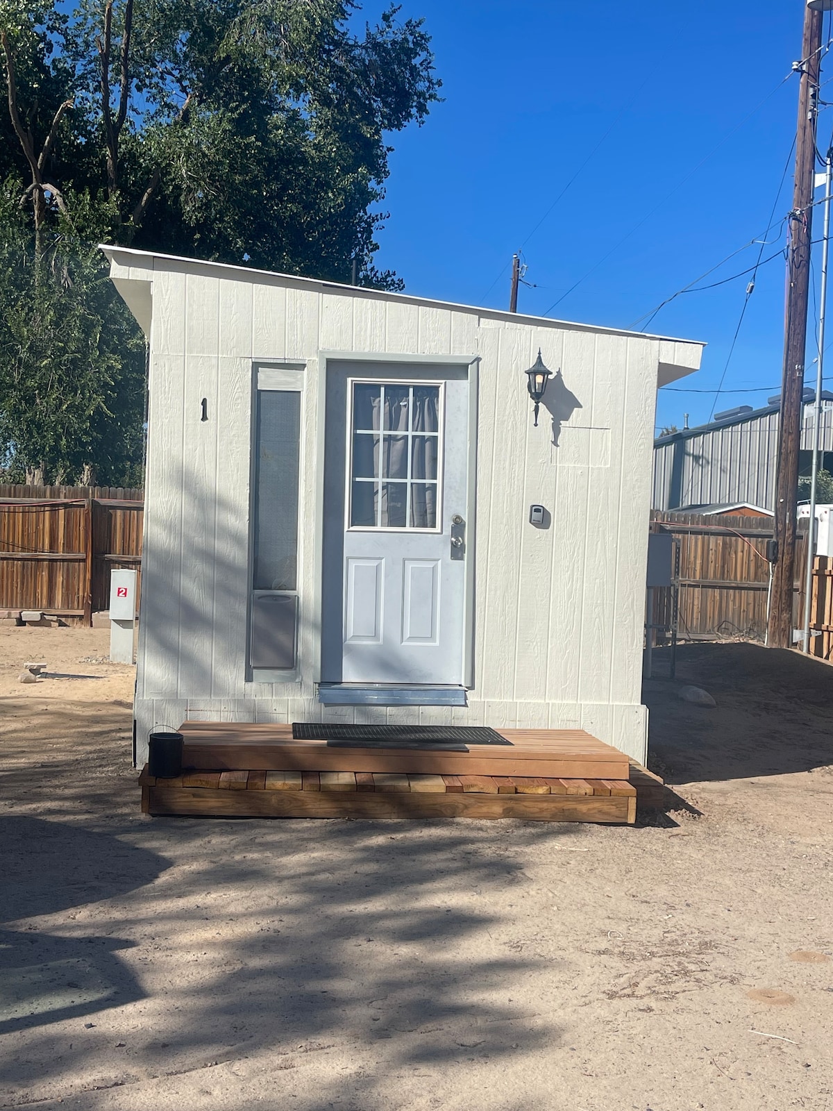 This 200-square-foot space offers everything you need for a comfortable home-away-from-home stay. Small but mighty, it features a full bathroom, kitchenette, smart TV, dinette, sofa, and an exceptionally comfortable bed. Located behind a home on a busy highway, the unit is quiet, convenient, private despite being nestled among other units. Plenty of parking and close to Chaco, Salmon Ruins, Bisti Badlands, and SunRay Casino.