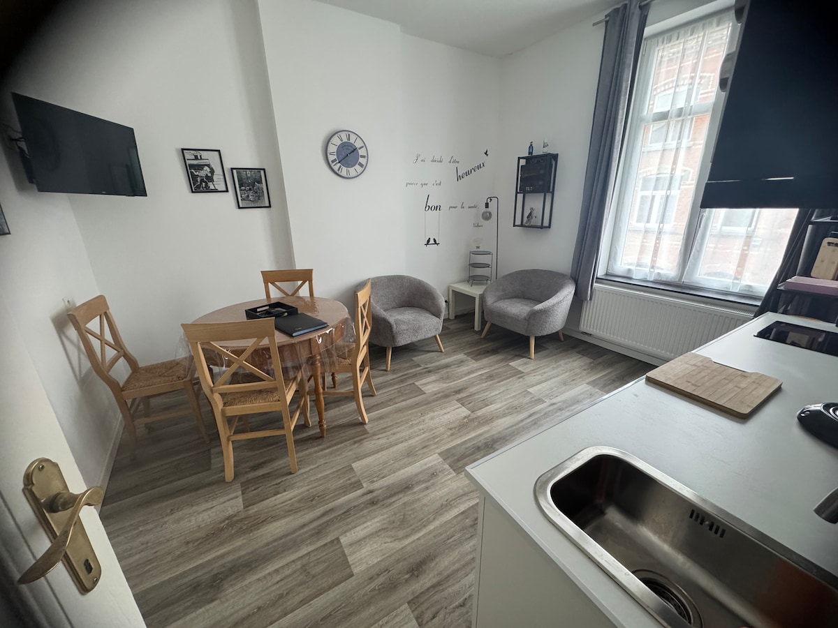 Séjour agréable dans un appartement lumineux à la décoration particulièrement soignée Composition : 1 chambre (lit king-size), cuisine full équipée (dont lave-vaisselle, machine à café, bouilloire, etc.), douche, salon cosy, salle à manger et WC. Situé à 15 minutes à pied de la citadelle et du centre de Namur, 5 min en train (gares à 300m et 400m), arrêt de bus à 5 mètres du logement. Compris : Wifi, TV avec Netflix, thé, café, lait, sucre, bonbons Parking privé