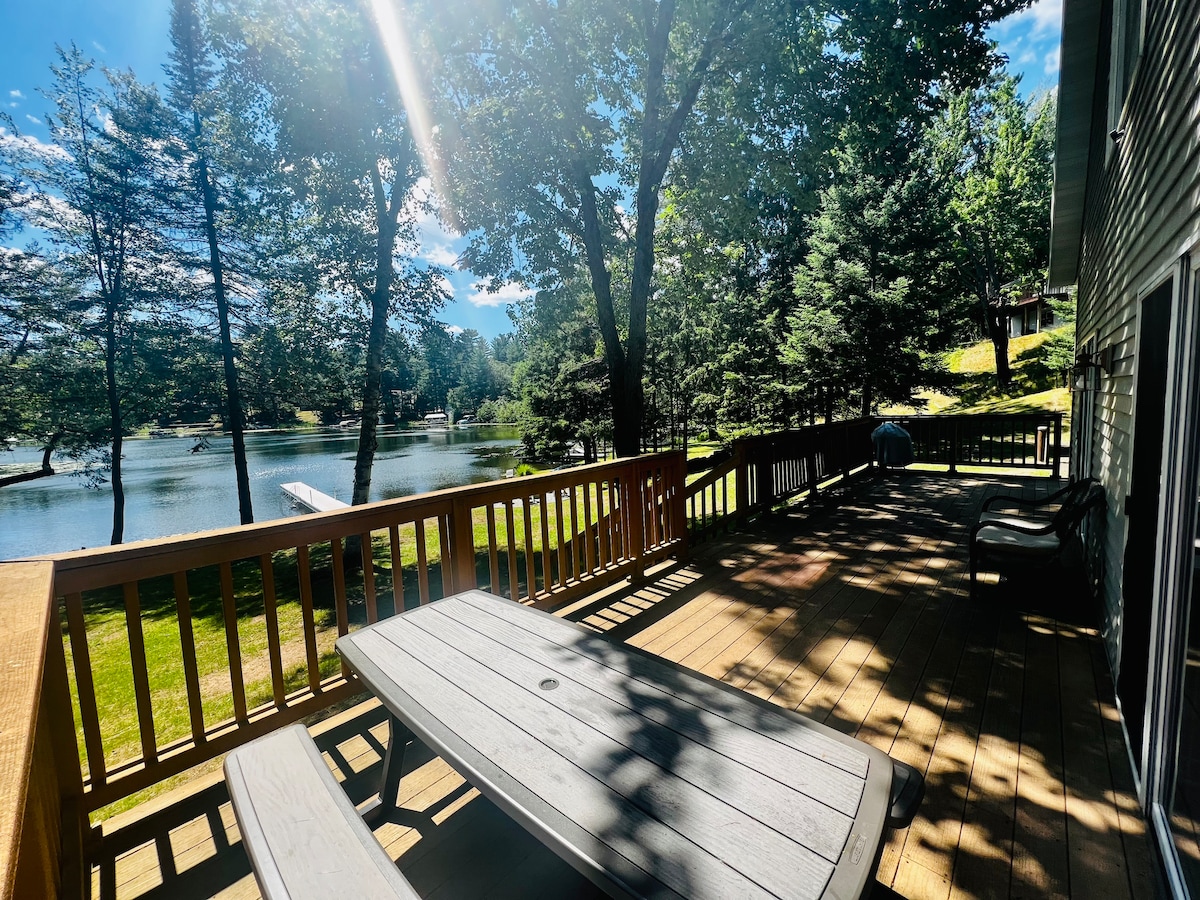 Prime location at Spread Eagle Chain of Lakes on Middle Lake. This peaceful bay attracts all kinds of wildlife and is phenomenal for bird watching: herons, loons, and eagles. Sandy shore is child friendly for the little ones. Enjoy privacy, peace, and quiet on ample acreage—a large patio with a spacious view and large windows to watch the spectacular sunset. Three acres & generous waterfront. Rent a pontoon or your own via the local public launch to reside at your private dock.