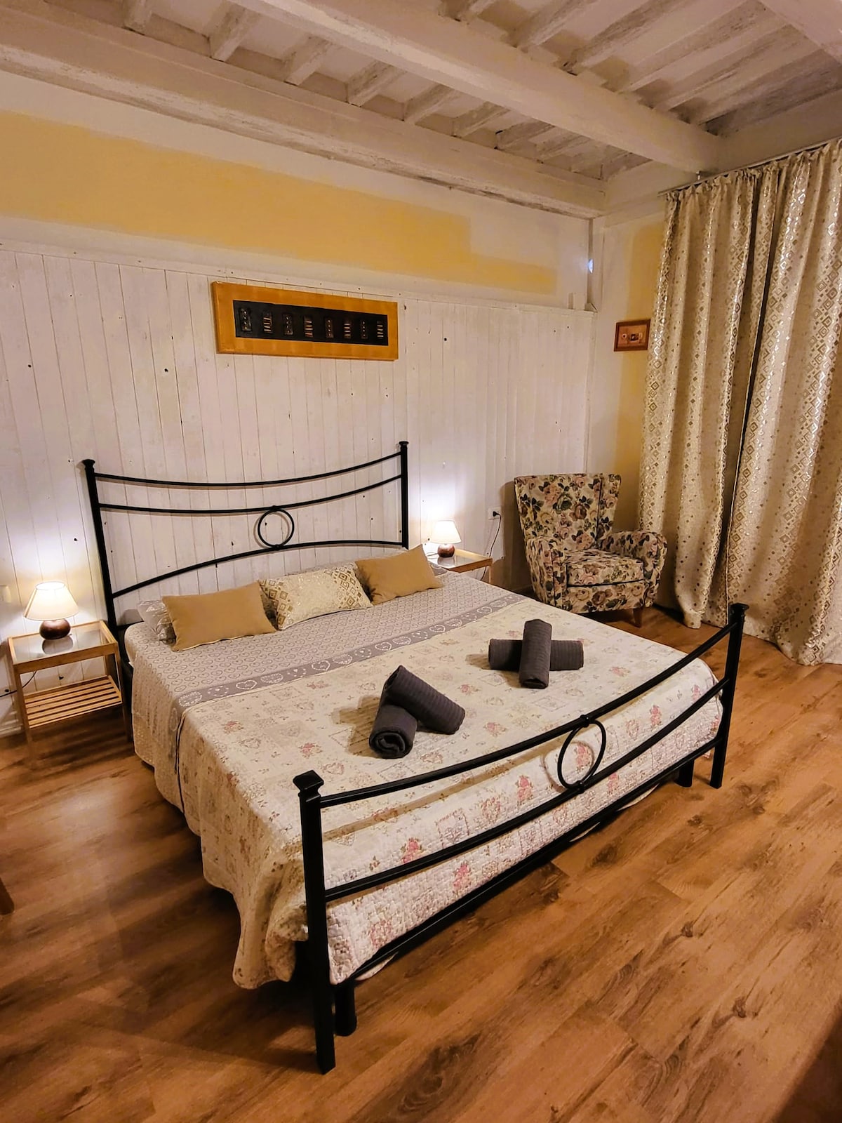 Comfortable double room in a typical Tuscan farmhouse. This is our wheelchair accessible room at ground floor features a private bathroom with a walk-in shower. We are in the middle of nature, but at the same time not far from population centers. For a supplement of €8 per person we offer an Italian breakfast with local products, served in summertime on our terrace. We also propose to join unique experiences such as wine tasting, Tuscan dinner+olive oil presentation and pasta cooking classes!