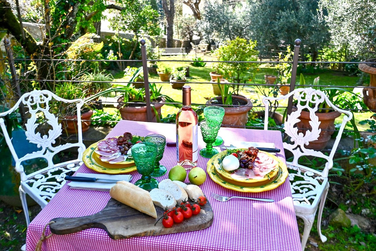 Al primo piano di una Villa di fine '800. Entrata riservata, ampio giardino con resede esclusiva, lettini, sedie, sdraio,ombrelloni, tennistavolo. Barbecue. Piccola piscina per bambini. Wellness room con idromassaggio riscaldato Jacuzzi, box doccia con bagno turco ad uso esclusivo degli ospiti. Parcheggio libero nel parco. Ideale per vacanza in famiglia e per coppie nel rispetto della quiete e del distanziamento. Internet wifi gratuito in tutto l'appartamento. A 30 minuti di auto da Firenze.