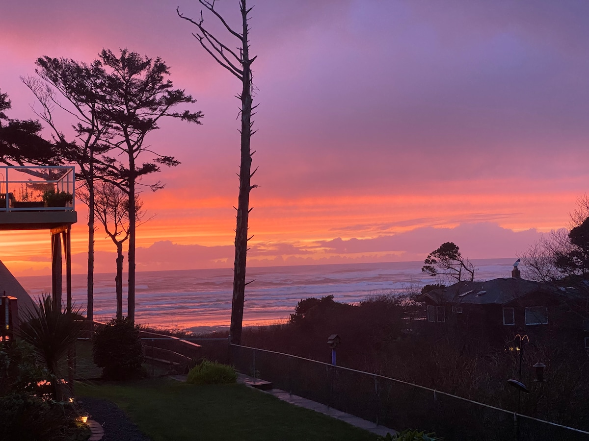 The Salty Crab is an apartment in a duplex that offers a comfortable coastal retreat near the beach with ocean views from the deck and stunning sunsets. Features 2 bedrooms (1 Queen, 1 Full), walk-in shower, and a upgraded fully stocked kitchen with stainless appliances, dishwasher, glass stovetop, built-in microwave, and refrigerator. Smart TV, WiFi, and great cell reception. Beach access nearby and Patterson Park adjacent. Convenient off Hwy 101, 6 miles north of Yachats. No laundry.