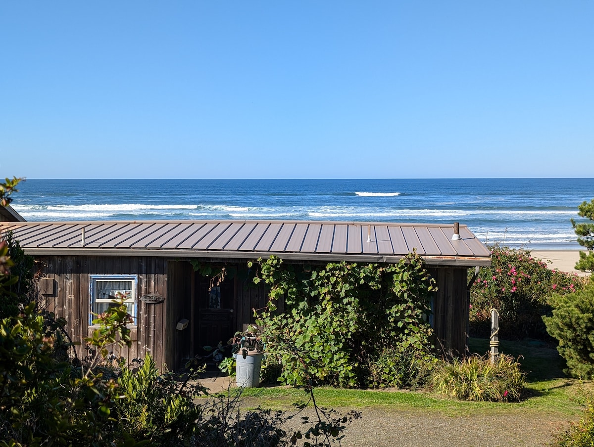 We warmly invite you to stay at our cozy seaside cottage in one of the most ideal locations along the Yachats oceanfront – just steps away from the northern end of the spectacular 804 Trail where it meets a seven mile stretch of sandy beach. Enjoy the tranquil view of the Pacific Ocean from the comfort of the living room or while relaxing on the oceanside deck, with prevailing ocean winds mitigated by a sheltering grove of spruce trees.
