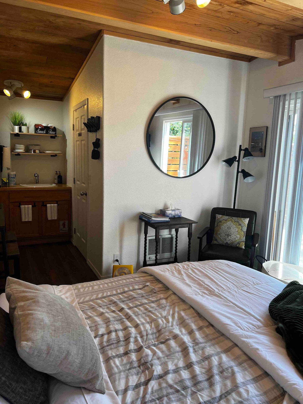 At this peaceful and centrally-located suite tucked behind a 1930’s home up a little hill, you will be close to everything important. Walk 1/5 of a mile to Old Town, where you may visit The Port of Siuslaw, many well known restaurants, art galleries and shops. Hwy 101 is a couple blocks away where our famous Pono Hukilau Restaurant is located. Walk a wee bit further to Exploding Whale Park and enjoy sitting on the river’s beach for a picnic or take a short drive to Heceta Beach for the day.