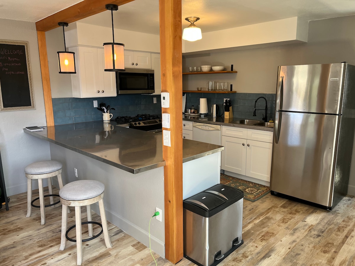 Visit the coastal town of Florence, Oregon. Located in Old Town, across the street from the Port of Siuslaw. Surrounded by bakeries, coffee shops, restaurants, galleries, retail shops, and a brewery..all walking distance from this one bedroom fully equipped cottage. King bed and queen pull out futon. Gas fireplace. Enjoy cooking? The kitchen is completely stocked, including spices, coffee maker, espresso maker, cones and filters, and a sample of coffee beans. Washer/ dryer. Fenced outside area.