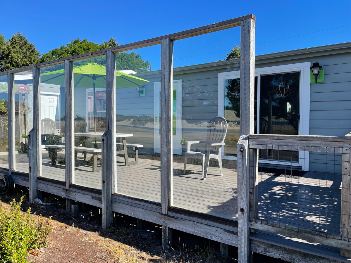 Recently updated the guest bedroom to replace the old trundle beds with brand new queen bed and flatscreen TV. Our little slice of heaven located 2 blocks from one of the nicest beaches in Oregon. Summer visits include optional access to Bayshore Clubhouse (guest fee additional) with heated pool, rec room and more. 1 King, 1 Queen, small double futon, 2 bathrooms, large bathtub with view of ocean, Satellite, WiFi, Blu-ray player. Fully stocked kitchen, BBQ and wood stove.
