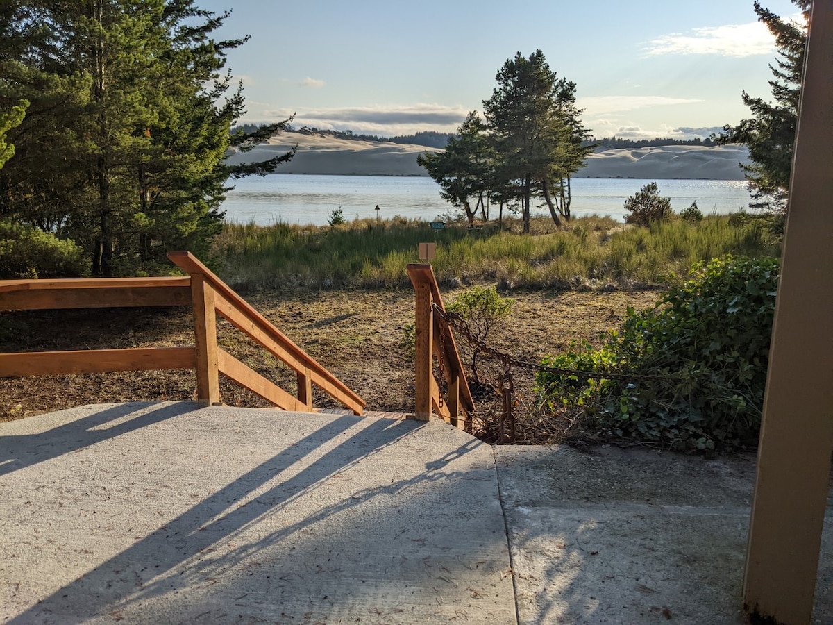 Time to enjoy life! soak in the hot tub. Fish for salmon right from your own private dock on the siltcoos river! Dock your boat or have fun with sup, kayak and canoes. 100 yard paddle east to the second largest lake on the oregon coast. Or paddle west 2 miles on the Relaxed river to the ocean where you can then get out and play on the beach! Bird watch as you catch your fish. Take it easy at this unique and tranquil place.