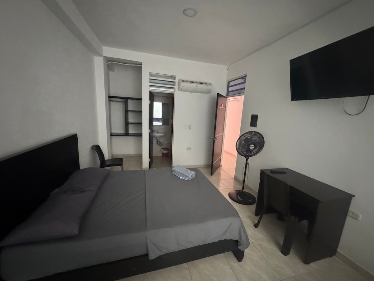 El apartamento más exclusivo y cómodo de la ciudad ubicado en un conjunto residencial a 3 minutos del aeropuerto,con sofá cama;cocina moderna y equipada;pieza auxiliar con cama de 1.40; y pieza principal con cama King,ambas con clóset amplio, baño social y baño privado con tina hidromasajes con agua caliente,balcón con vista a la naturaleza.Equipado con 3aire acondicionado y 3 TV.En el exterior: piscina, ascensor,cancha múltiple, parqueadero, salón social, zona BBQ, zonas verdes y seguridad 24/7