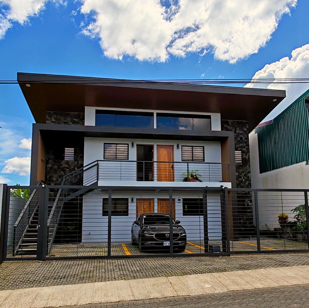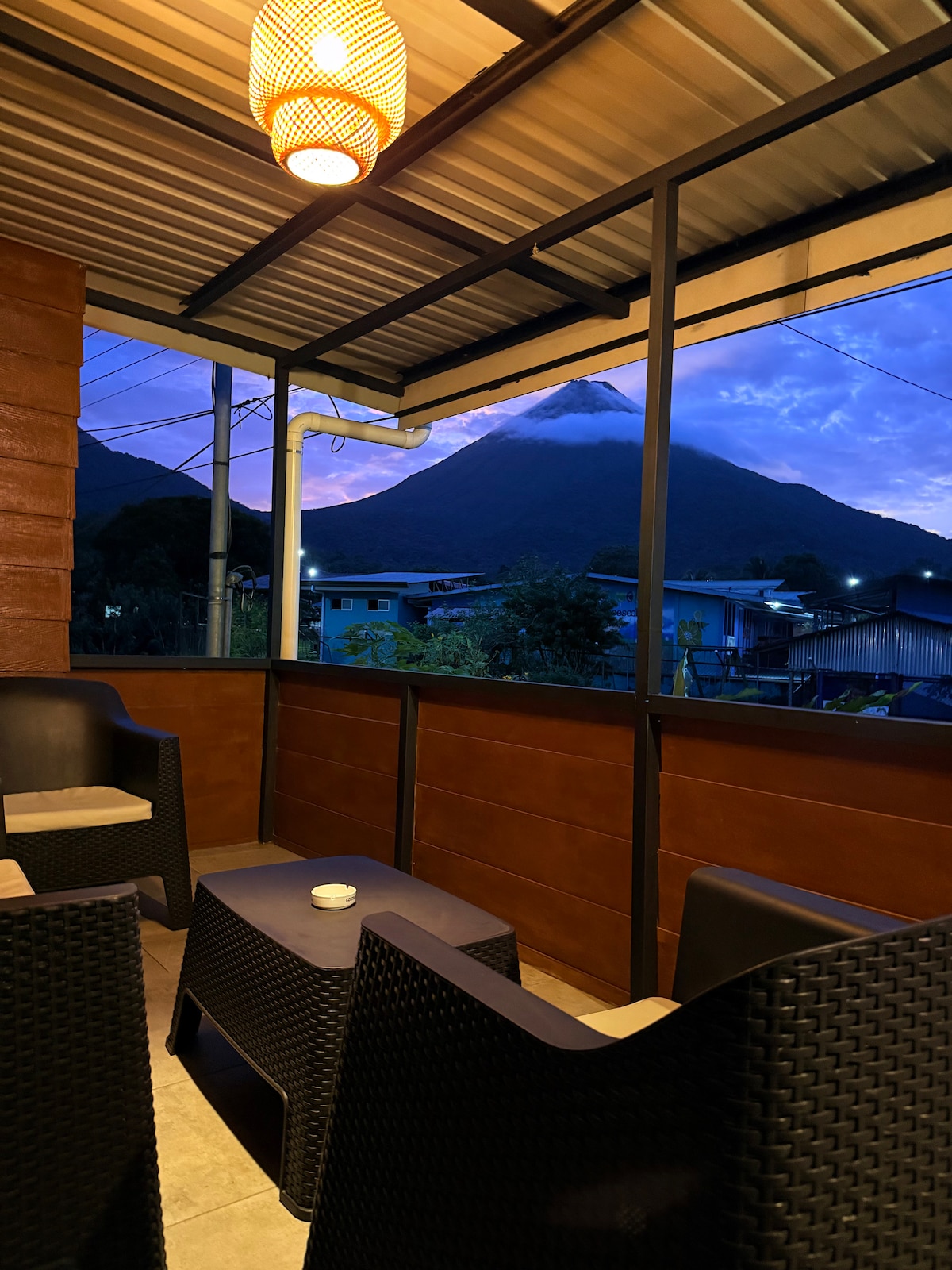 Relájate en esta escapada única y tranquila a La Fortuna de San Carlos. Nuestro alojamiento un hermoso lugar con vistas al volcán arenal. Lugar céntrico, a solo 1,5 km del centro de La Fortuna, 3 km de las aguas termales, súper y restaurantes a 400 metros. El alojamiento está completamente cerrado donde estacionas el auto al frente del alojamiento por lo que quedará muy seguro. El acceso lo tendrán únicamente nuestros clientes y los propietarios.