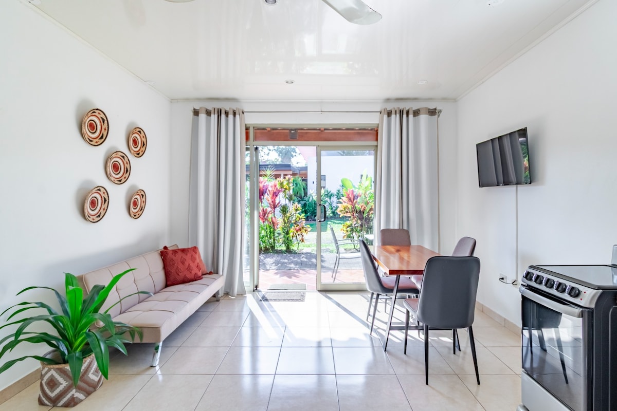 Experience La Fortuna downtown from a comfortable, centrally located apartment, situated 5-minute walk from restaurants and stores, 15-minute drive from Arenal Volcano and the renowned hot springs. Ideal for couples, families, and friends seeking both convenience and relaxation.