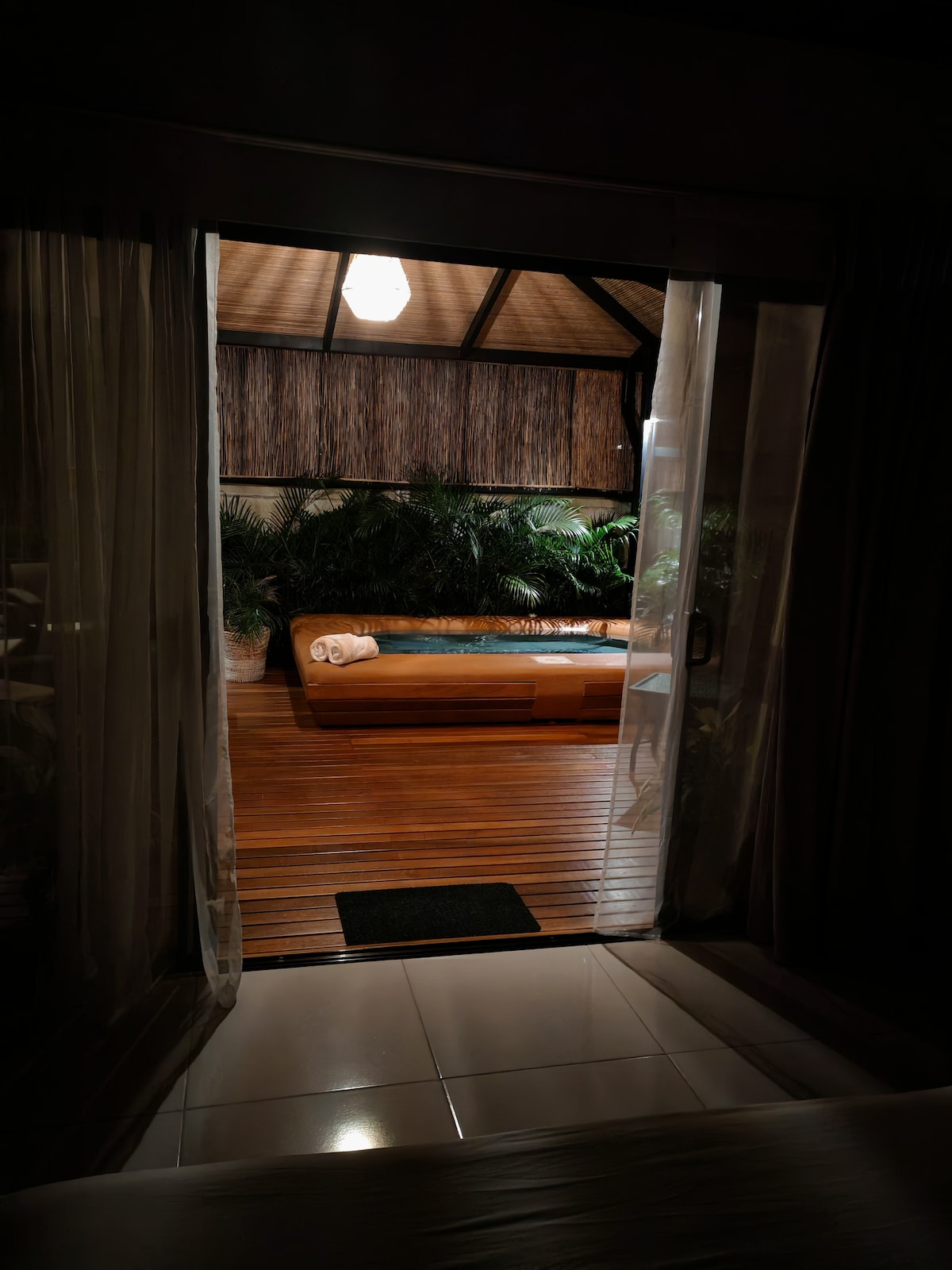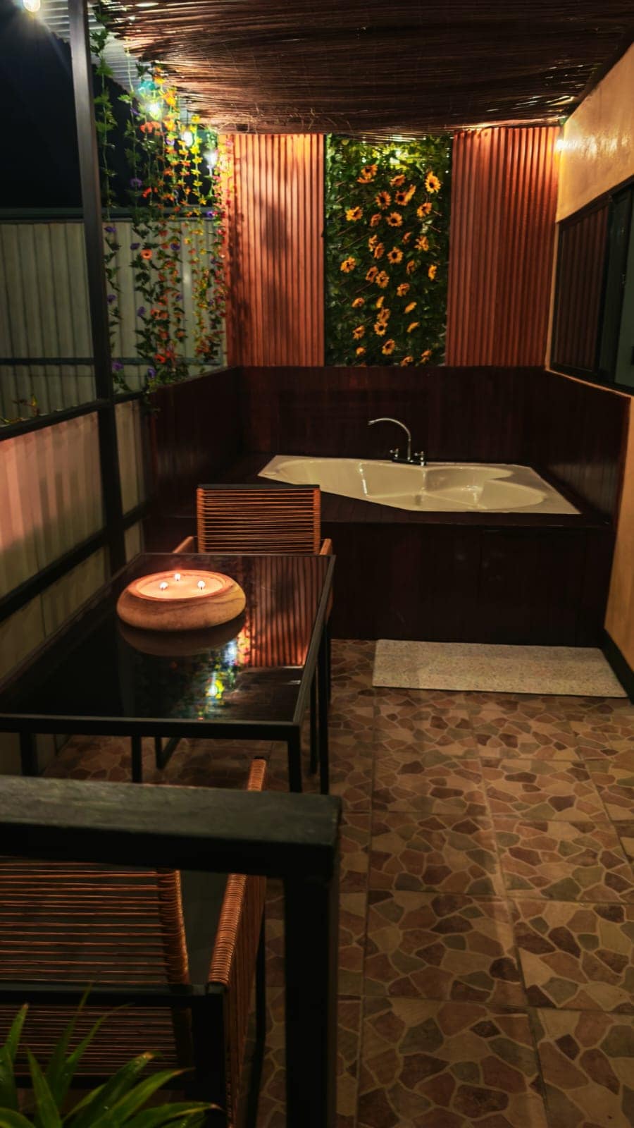 # 17时尚乡村风格单间公寓和户外按摩浴缸