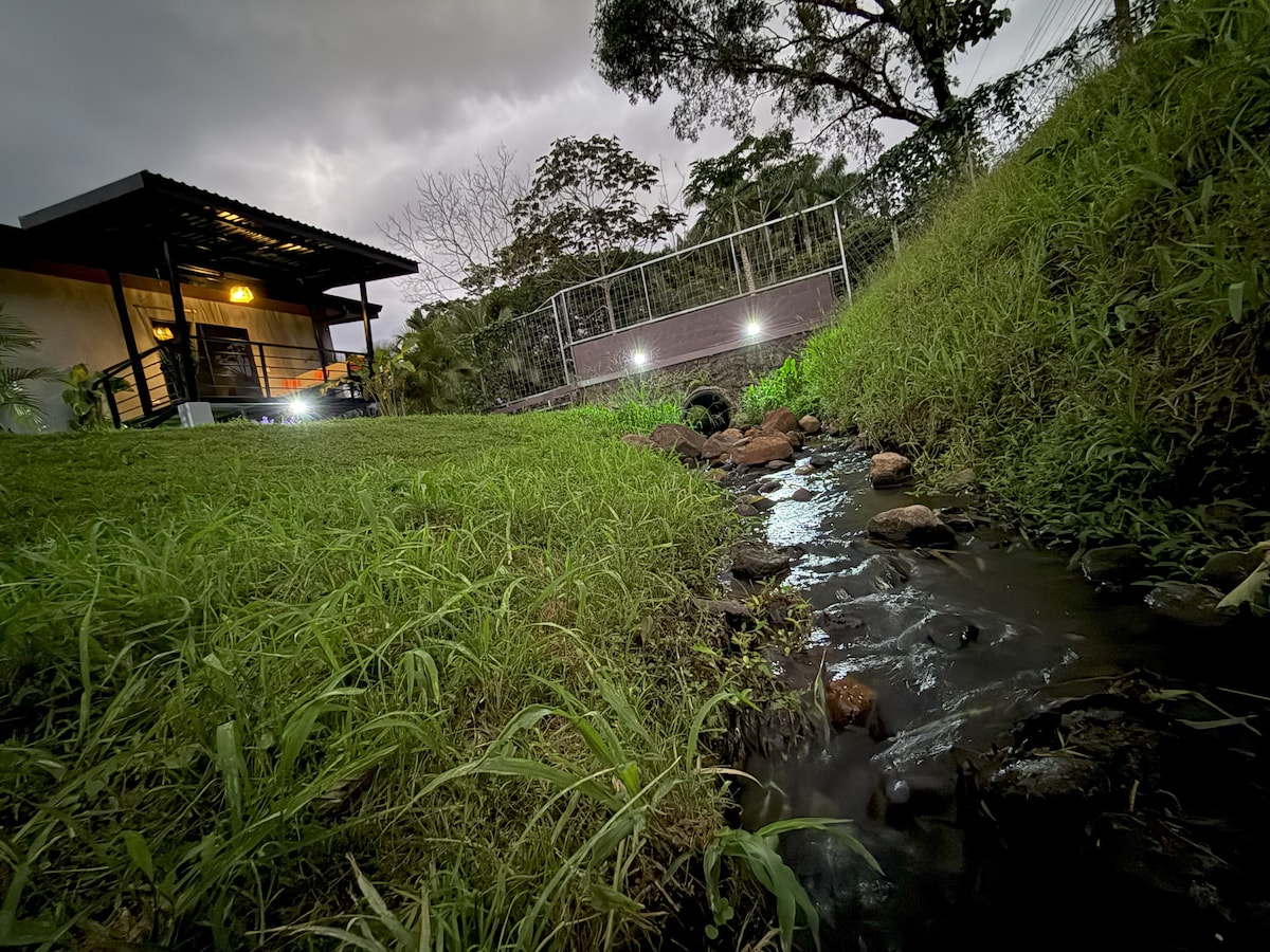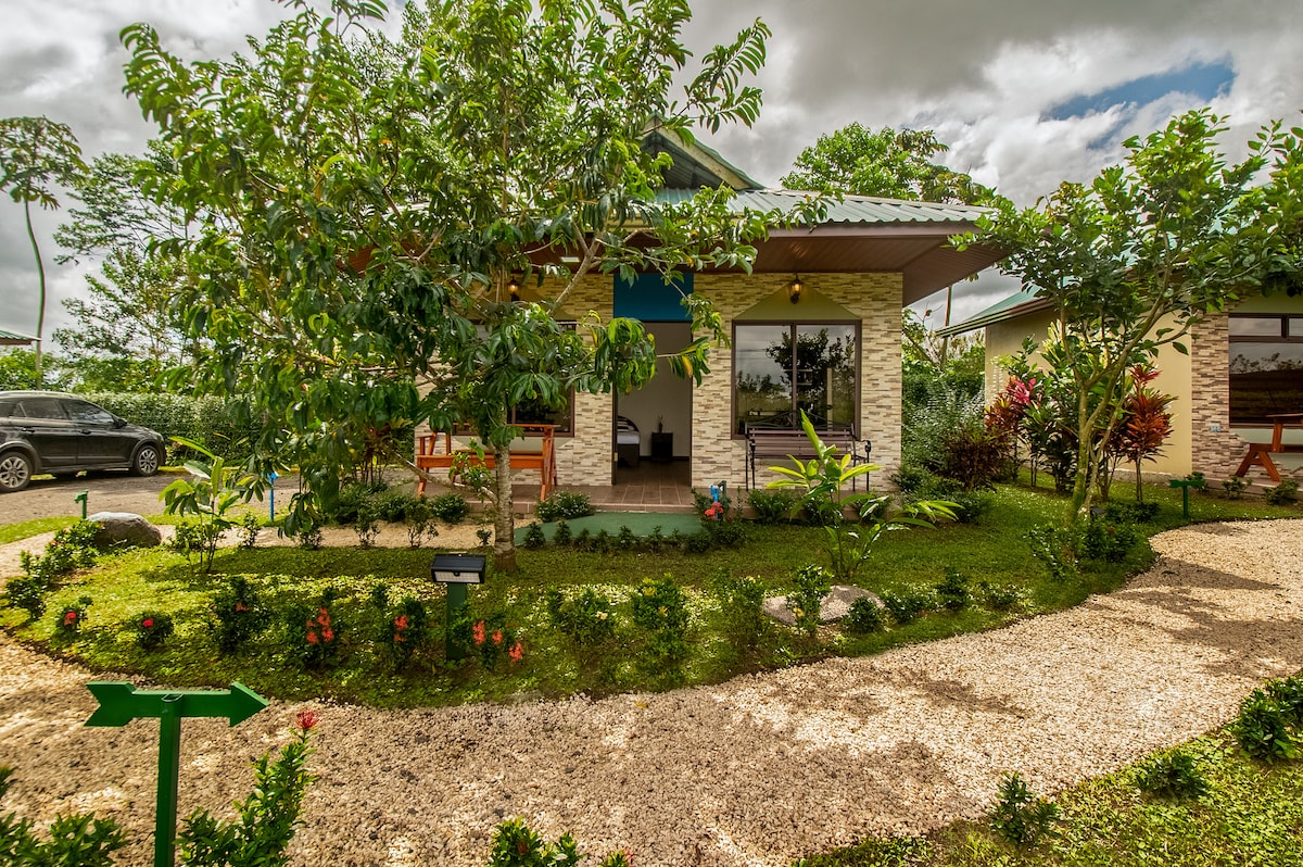 Disfruta de la sencillez de este alojamiento tranquilo céntrico, privado ,construido Rustico Artesanalmente y con un concepto de aves de Costa Rica somos una familia Costarricence , Artistas Naturalistas ,tenemos un pequeño jardin al lado de la cocina al aire libre donde podras ver colibries ,maripoas ,orquideas ect, y con vista al Majestuoso Volcan Arenal a solo 5 minutos del Centro de la Fortuna