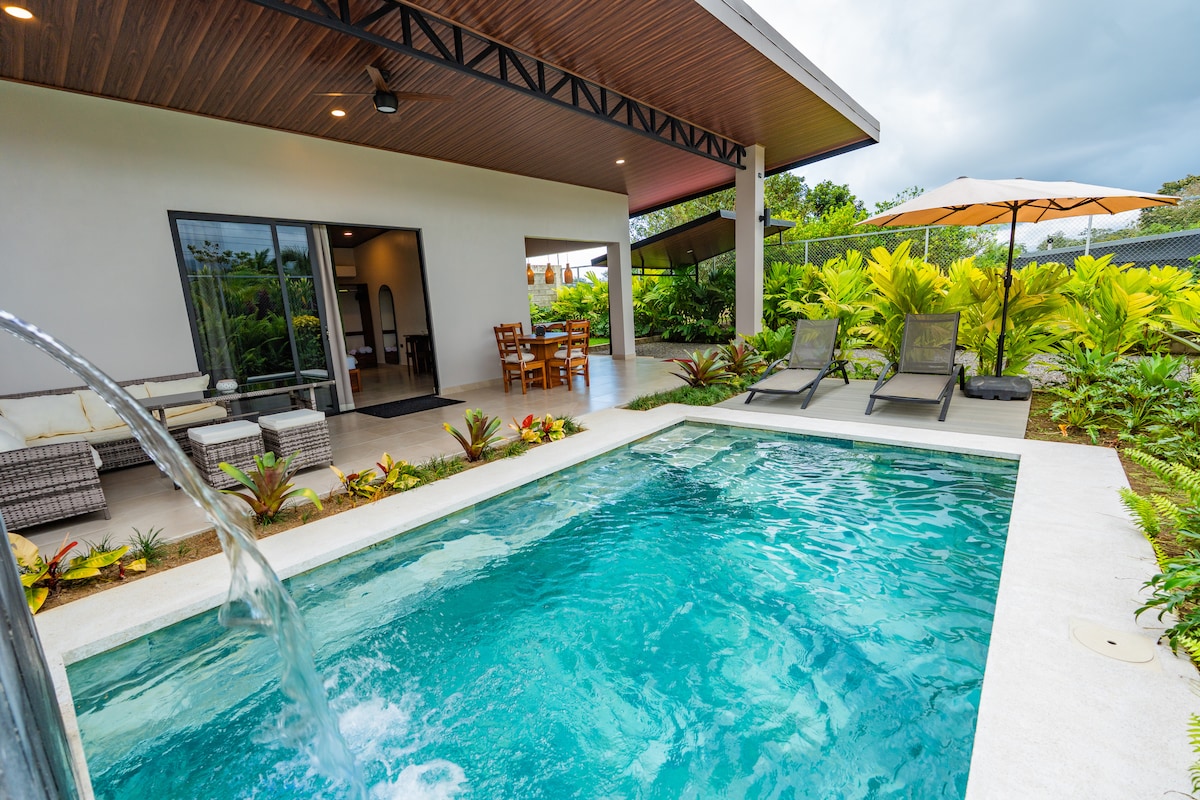 Escape to your own tropical hideaway in the heart of La Fortuna! 🌋 🌴✨ This stylish villa offers a king bed, jacuzzi, private outdoor shower, and a lush rainforest terrace just for you. Stay connected with ultra-fast WiFi, relax with a 55” Smart TV, and enjoy full comfort with A/C, hot water, kitchen, and private parking. Designed for couples or adventurers seeking luxury, privacy, and an unforgettable connection with nature.