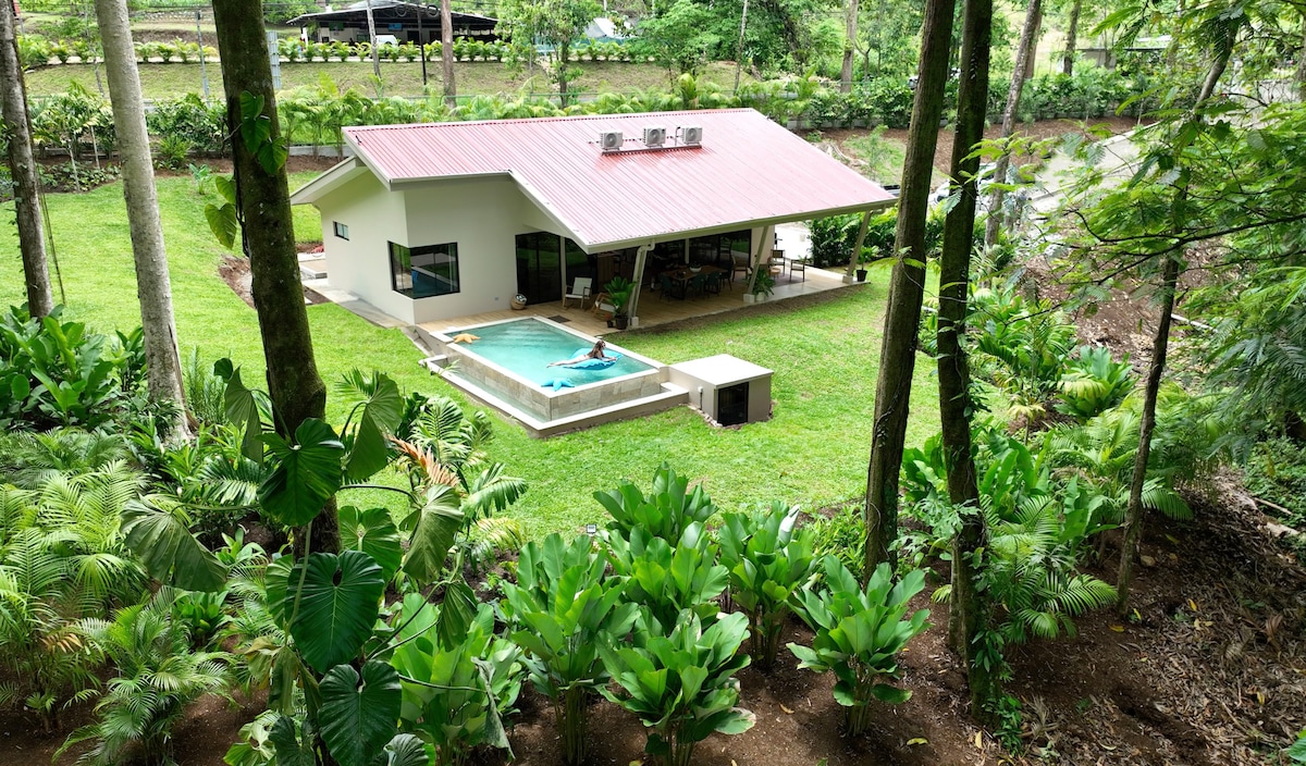 At Casa Pura Vida, you'll enjoy an entire house with a private pool: there are no shared areas. Located a 12-minute drive from downtown La Fortuna. The property is entirely yours. Surrounded by lush forest, it is in a secluded, safe, and quiet neighborhood. There’s a good chance of spotting wildlife (birds, garrobos, etc.). The house features a fully equipped outdoor kitchen and barbecue area, a cozy bedroom with A/C, bathroom with hot water, WiFi, streaming TV, games, and a large outdoor area.