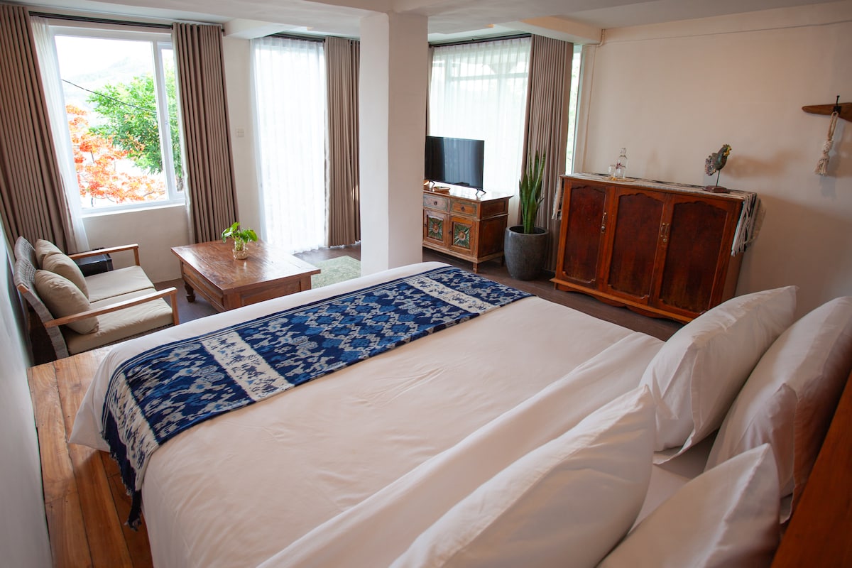 Escape to our serene hilltop retreat in Labuan Bajo, where natural beauty and modern comfort harmoniously converge. Nestled close to the town, harbor, and airport, our shared home is a tranquil oasis. After a day filled with thrilling adventures, our spacious and serene accommodations provide the ideal haven to unwind and recharge. The peaceful atmosphere and breathtaking panoramic views of the entire bay ensure a truly unforgettable experience.