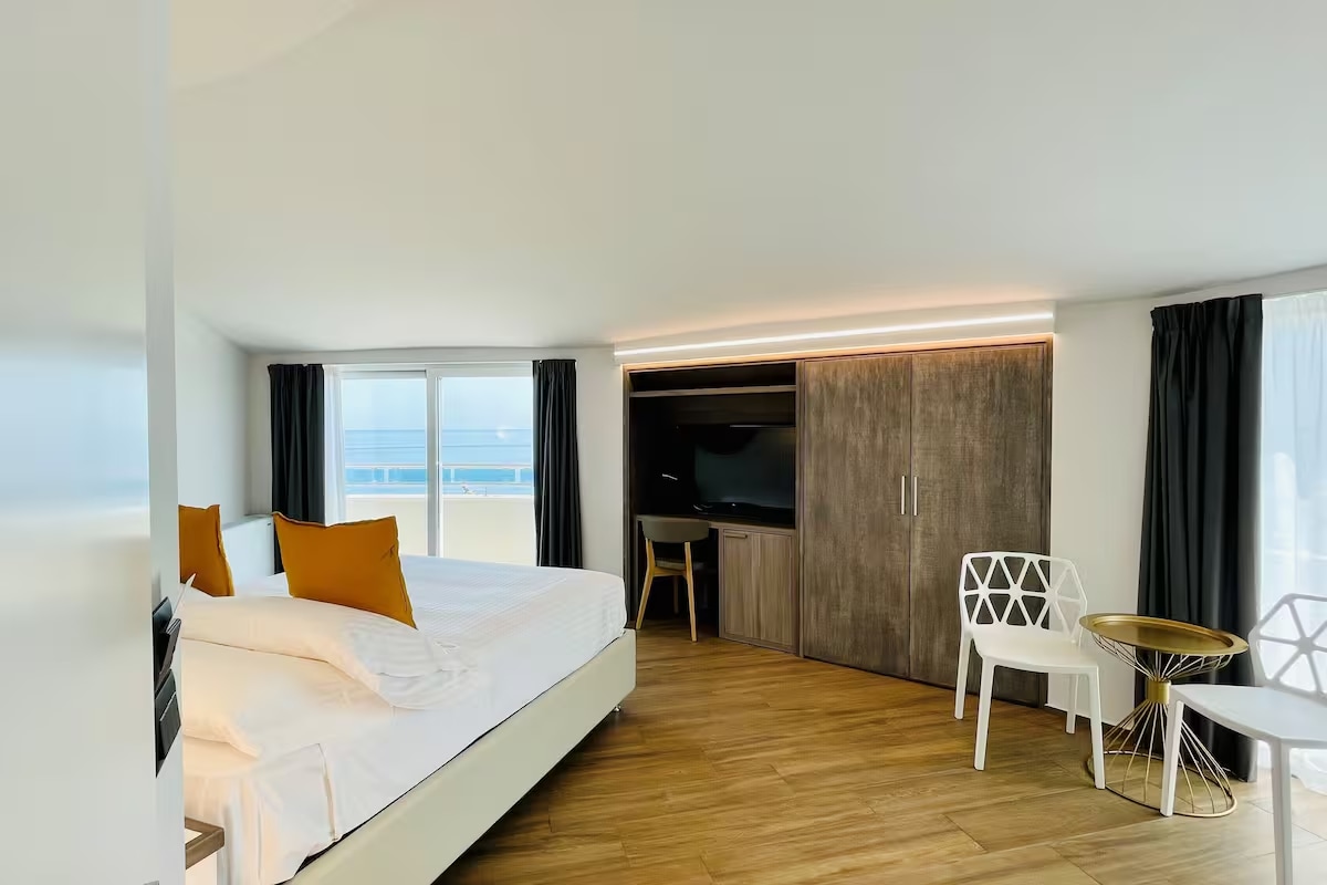 Camera Matrimoniale situata nel cuore di Giardini Naxos. Questa camera è un’oasi di tranquillità e comfort, a soli 20 metri dalla spiaggia. La camera è arredata con gusto, con un letto matrimoniale comodo e accogliente, arricchito da un topper e doppi cuscini per garantire un sonno di qualità. Per il vostro intrattenimento, la camera è dotata di una Smart TV, perfetta per guardare i vostri programmi preferiti dopo una giornata trascorsa a esplorare la città o a prendere il sole in spiaggia.