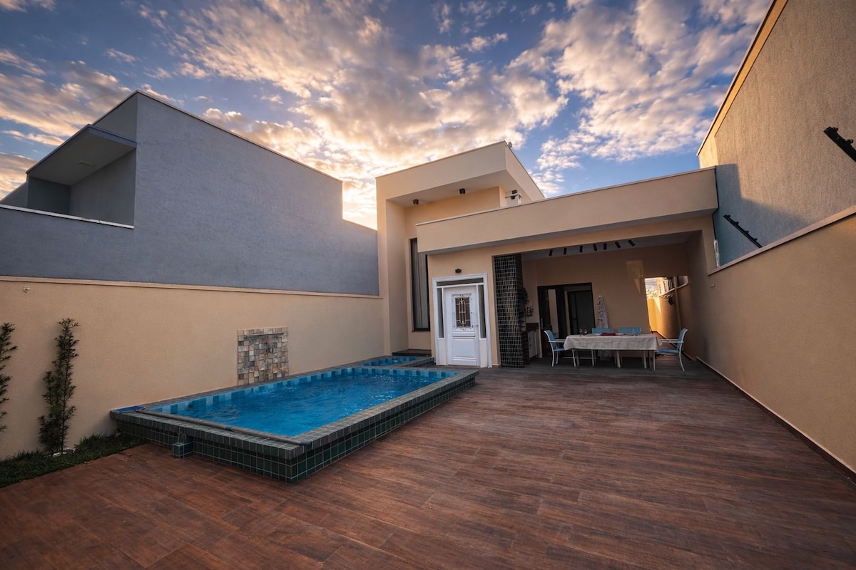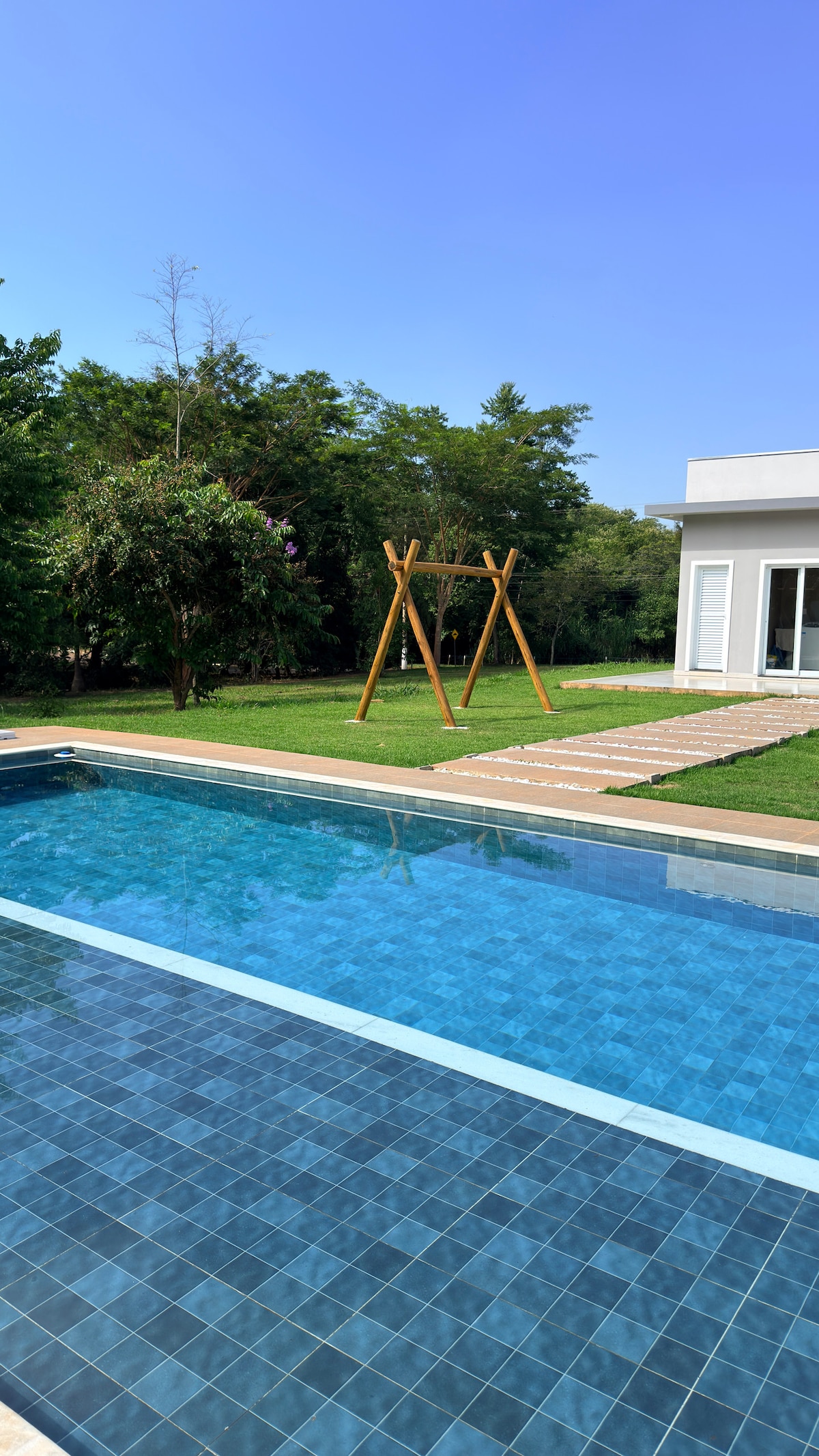 The property covers 5,000 sqm, with a pool near the barbecue area, sports court, and a complete game room (billiards, foosball, table tennis, video games, and card table). It offers mesh Wi-Fi with 600 Mbps fiber internet, satellite TV, a single-floor layout, flat terrain, a kid's playground, and numerous communal spaces, both indoors and outdoors! Located just 1 hour from São Paulo! The house is a mere 10-minute drive from the city center and the Skydiving and Ballooning Center.