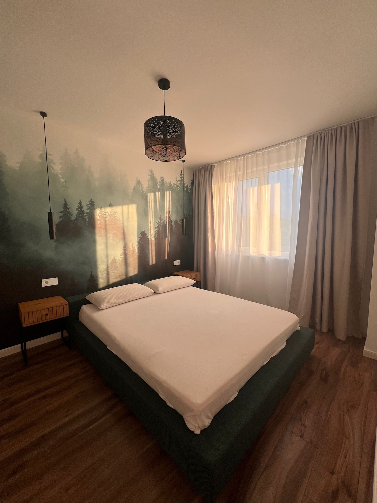 Relax yourself in this calm and elegant space. A new apartment with an exceptional view. The perfect place if you are looking for a peaceful retreat, away from the noise of the city. Everything was carefully thought of so that you can feel pampered. Suited for families with children and people that love nature. The hoia forest is nearby. The closest bus station is 20 minutes away if you are walking, so it would be best to have a car.