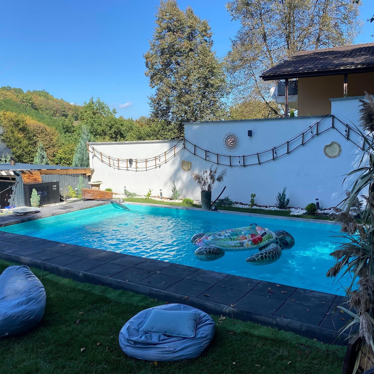 Casa Adda se alfa in mijlocul padurii ,la 2 km de Floresti, jud Cluj , DRUM de aces este pietruit (NU ASFALTAT) are curtea spațioasa cu loc de joaca pentru copii,piscina încălzită( intre lunile mai -septembrie) ciubar îngropat încălzit din PPR, 8 camere cu baie proprie ,living spațios, 2 terase dar si loc de relaxare la soare