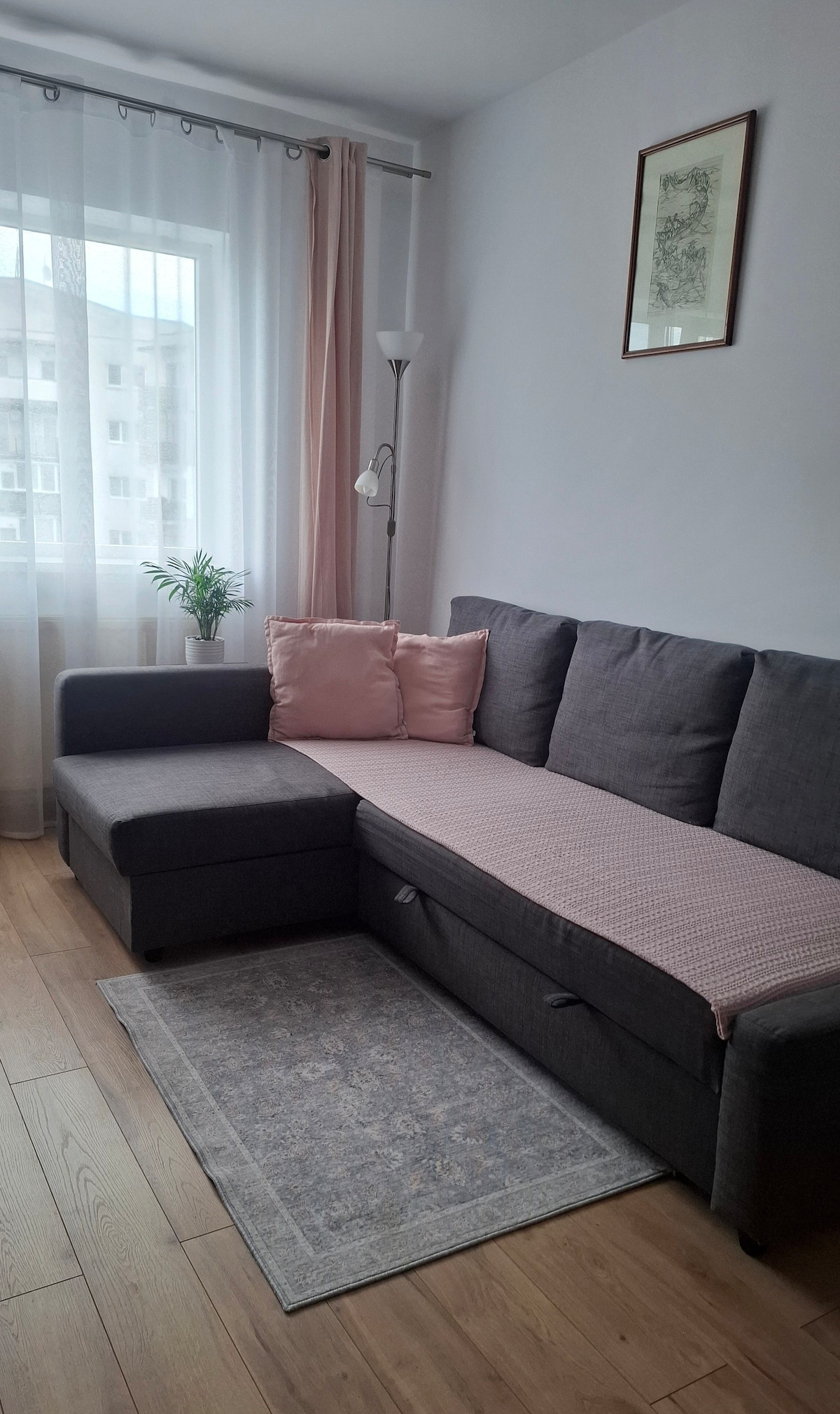 Cozy and relaxing apartament with a great view. The place has a minimalistic design and elegant details .It has all the appliances and devices that you expect in your home. With a 5 minute walk to the local shops and 10 minutes to the local bus station . We offer on site free parking. We also ofer air conditioning for a smal extra fee .