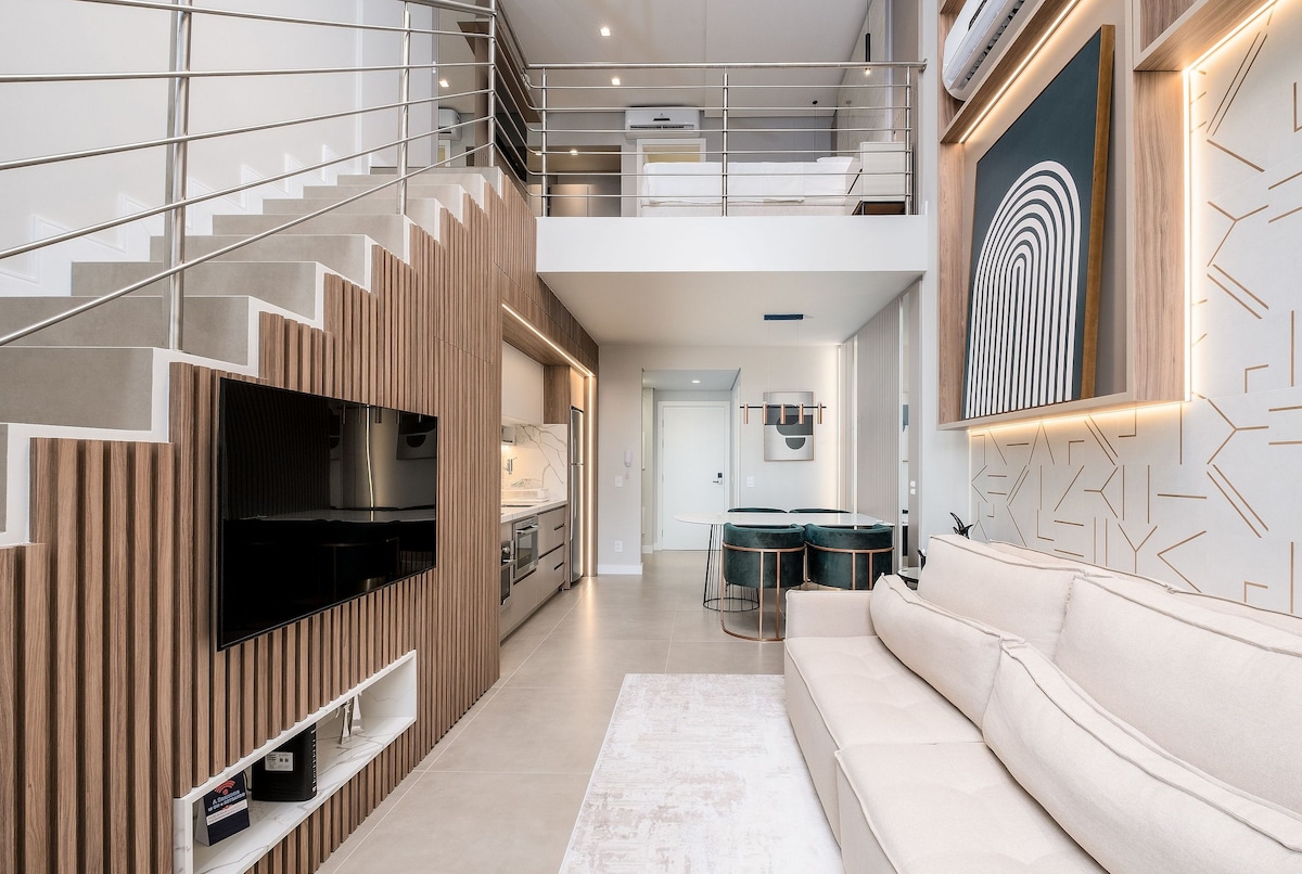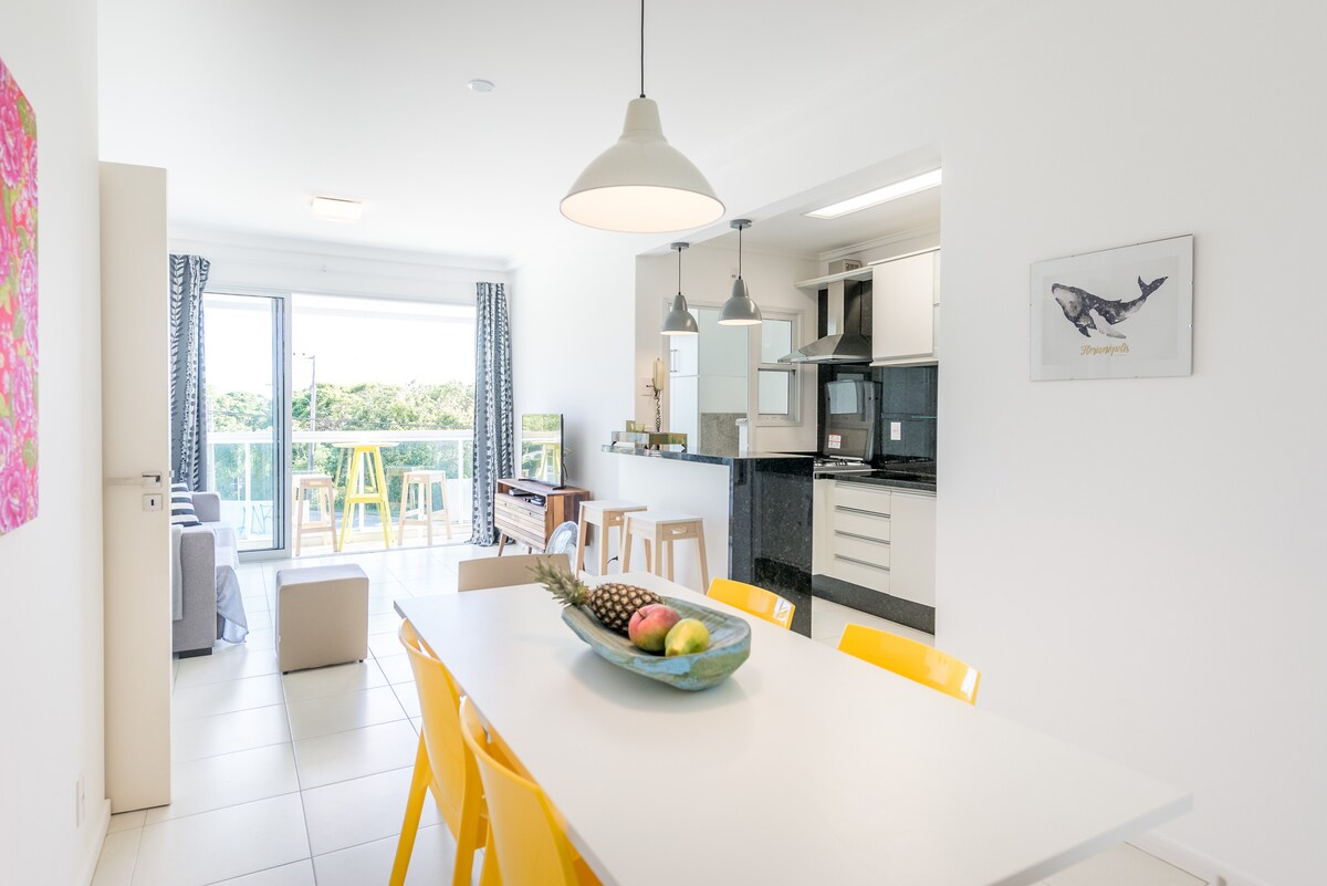 This sophisticated and spacious apartment can comfortably accommodate up to 2 people. Located near the beach and the center of Jurerê, it is perfect for those looking to explore the neighborhood with guaranteed convenience and mobility. Ideal for beach lovers who want to explore other charming spots in the region, after a day out, you can relax and have a barbecue with friends on the balcony, enjoying the air-conditioned spaces.