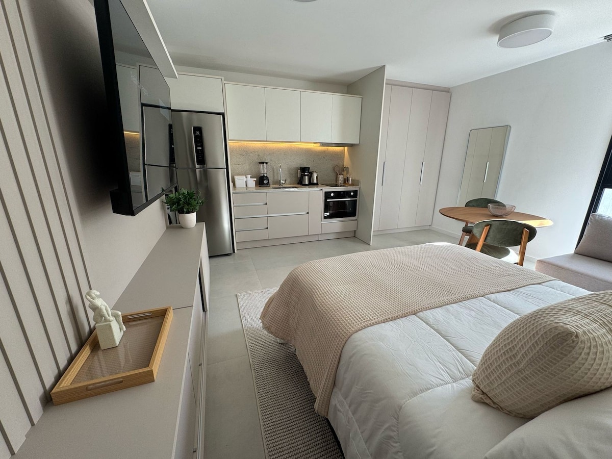 Studio novo, totalmente mobiliado e equipado, num prédio inteligente com arquitetura diferenciada que fica perto de tudo. Aqui você não vai ter que carregar chaves pois os acessos são todos faciais, dentro do prédio temos, academia, lavanderia, coworking/sala de reuniões, sacada gourmet e um belíssimo Rooftop com grama verde para você curtir momentos de relax. Temos vagas de garagem com suporte para bikes ou cadeiras de praia também