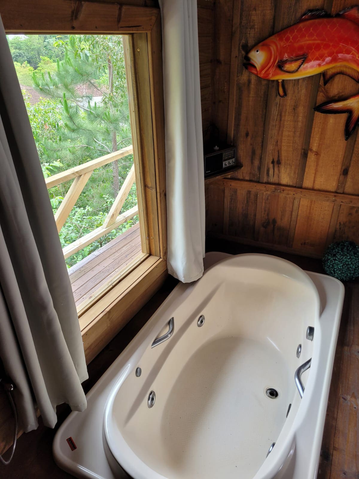 Cabana estilo TreeHouse, vista panorâmica, cercado por natureza é o diferencial desta exclusiva cabana! Com uma varanda acima da linha das arvores voce tera uma vista paradisíaca do oceano, mata nativa, canal cristalina e um vilarejo simpático de pescadores. Não a acesso a carros no morro, tornando se um lugar perfeito para amantes da natureza, aventureiros e quem ama praticar trilhas e esportes aquáticos. Localizado 15 minutos a pé da praia, estacionamentos, restaurantes e transporte público.