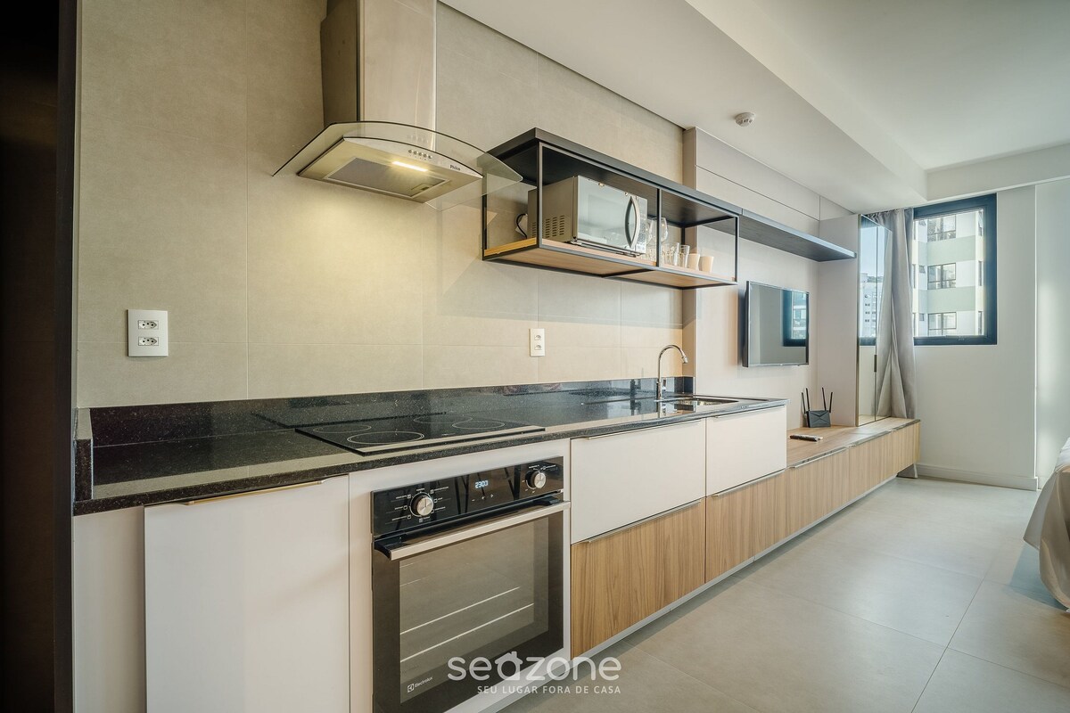 Complete studio with panoramic view! With a privileged location in Trindade, this studio offers a stunning city view. Equipped with a queen bed, air conditioning, Smart TV, Wi-Fi, and a fully equipped kitchen. Enjoy the common areas, such as the gym and Zen space. Just a few minutes from the beaches and with easy access to the best spots in the city. Don't miss the opportunity to book your stay in one of the best places in Florianópolis!