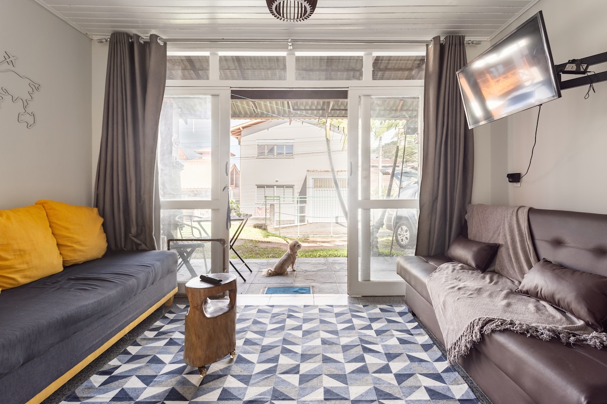 Casa térrea de 1 quarto em rua sem saída no Sul da Ilha. Wi-Fi de qualidade com área de trabalho. Cozinha equipada para estadias mais longas. Vaga de garagem . Maquina de lavar roupa. Churrasqueira. A região conta com praia (Pico da Cruz/Campeche), super mercado, lagoa de água doce, restaurantes, cervejarias e shopping center e cinema. Tudo isso há uma distancia a pé! É ideal para quem busca conforto, praticidade e preço justo em Florianópolis.