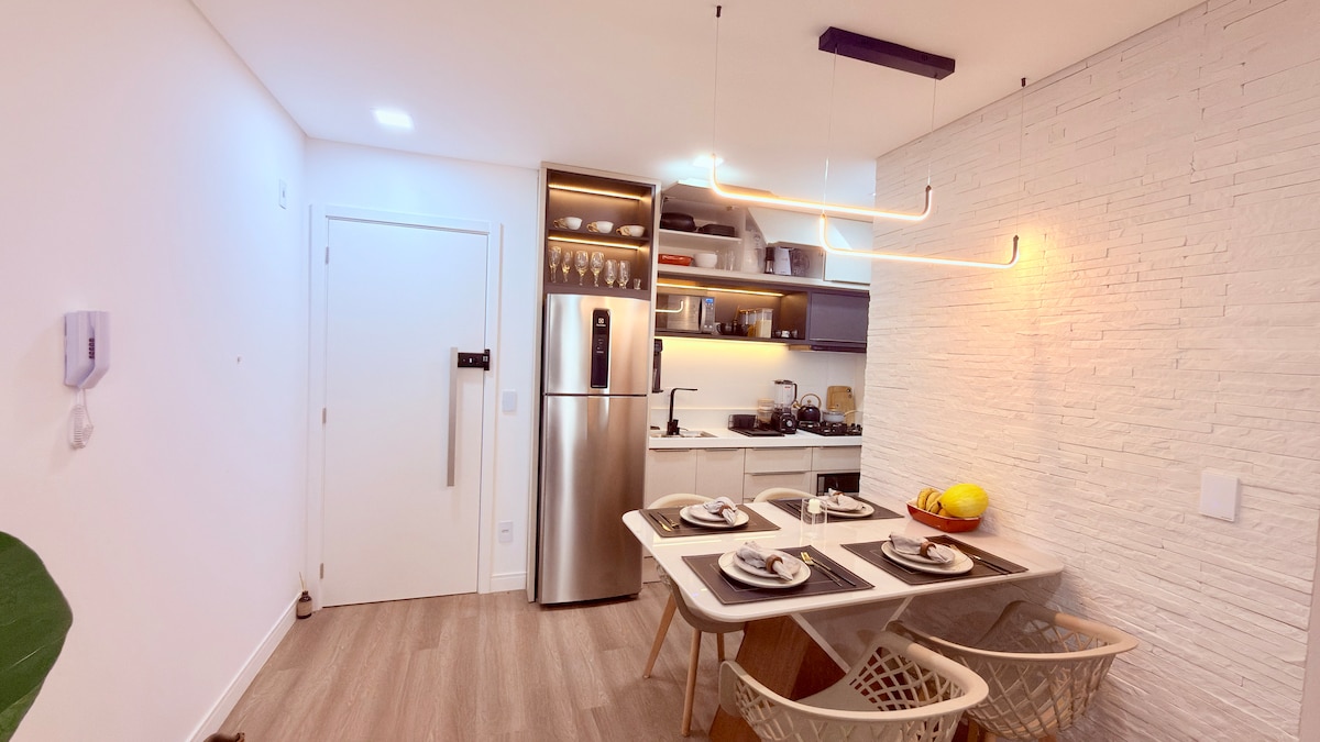 Apartamento aconchegante e com muito "borogodó" em condomínio Thai Beach Home Spa, alto padrão FRENTE MAR, piscina aquecida e spa. 1 dormitório, sala integrada à cozinha, ambientes decorados e equipados para sua estadia ser perfeita. Espaço acomoda até 4 pessoas, 2 na cama queen e até 2 no sofá cama amplo da sala. Lazer disponível: - Piscinas e jacuzzi ao ar livre - Piscina AQUECIDA coberta e SPA quentinho; - Academia; - Sala de massagens; - Parquinho para crianças; - Cinema